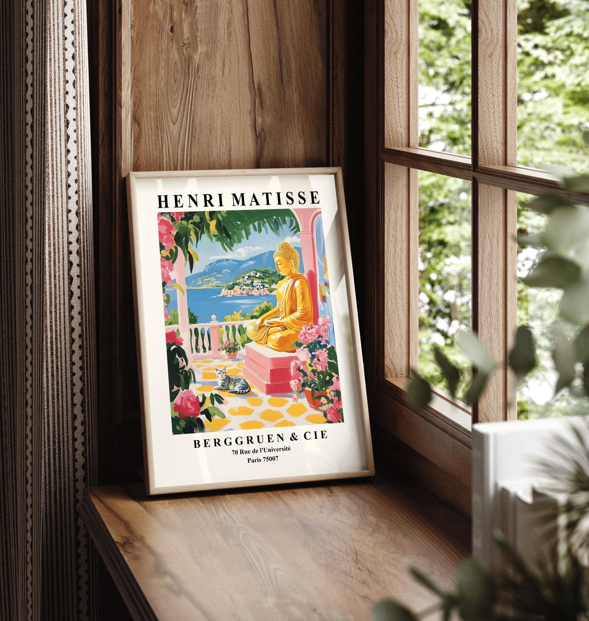 Buddha Cat Art Print: Matisse Style Spiritual Wall Decor