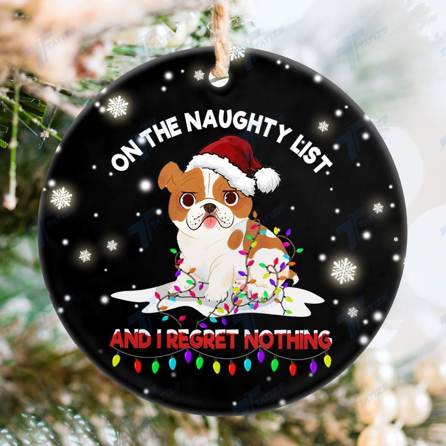 Bulldog On The Naughty List Ornament, Happy Christmas Ornament, Christmas Gift, Christmas Decoration
