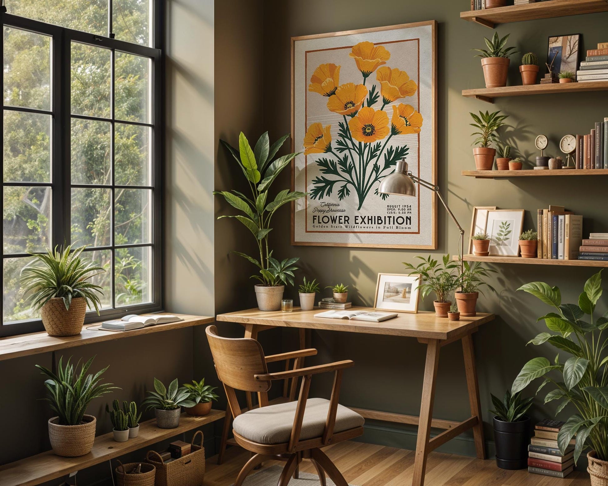 California Poppies Botanical Poster, Retro California Flower Wall Print | Botanical Wall Art for Plant Lover Gift, California Flower Decor