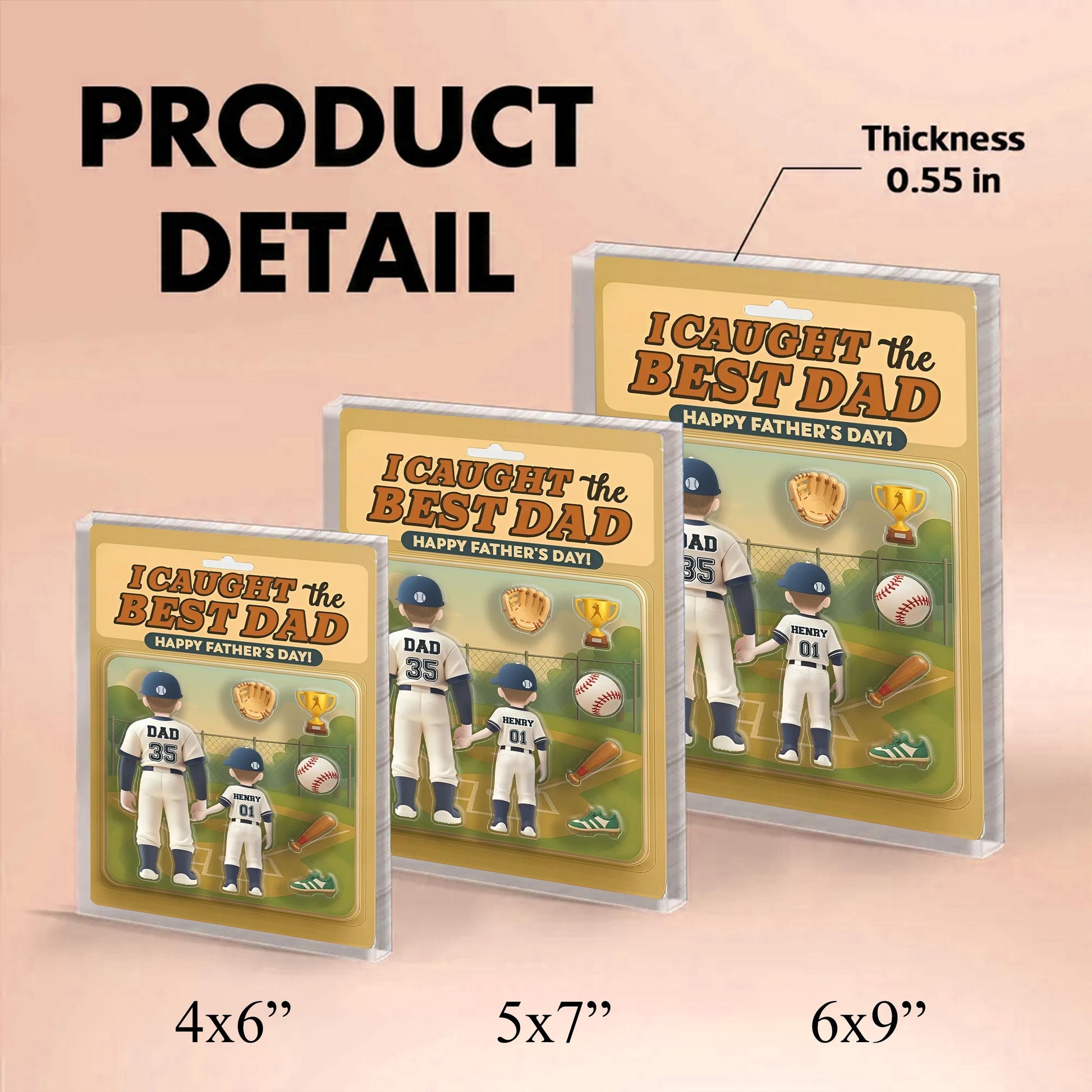 Caught the Best Dad Baseball Custom Figure Personalized Acrylic Block Plaque, Personalized Father's Day Gift for Dad, Gifts for Husband