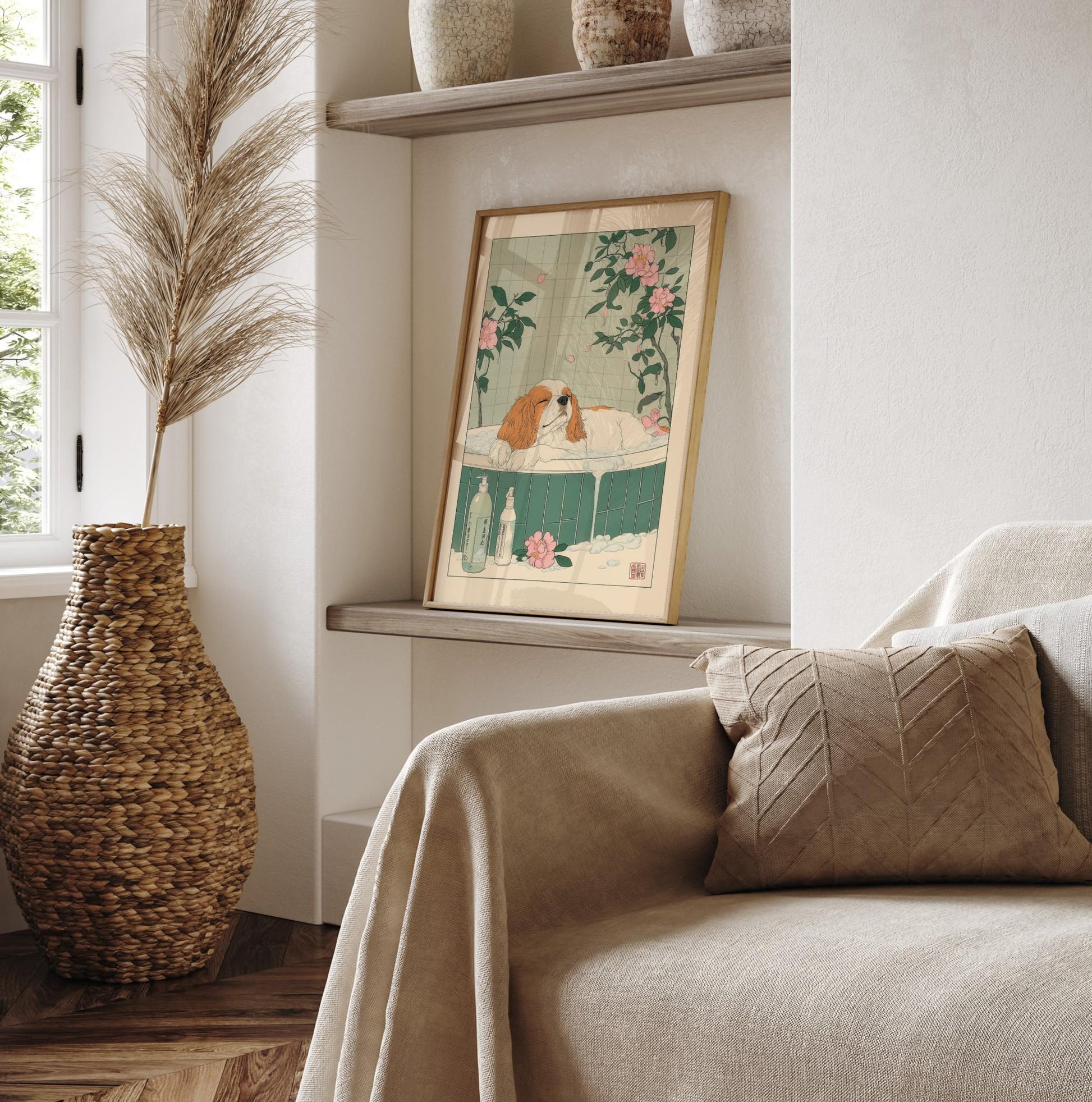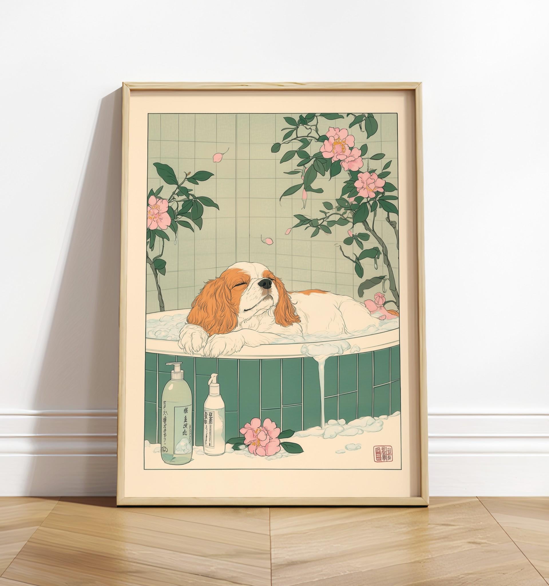 Cavalier King Charles Spaniel Bathroom Art Print: Ukiyo-e Wall Art