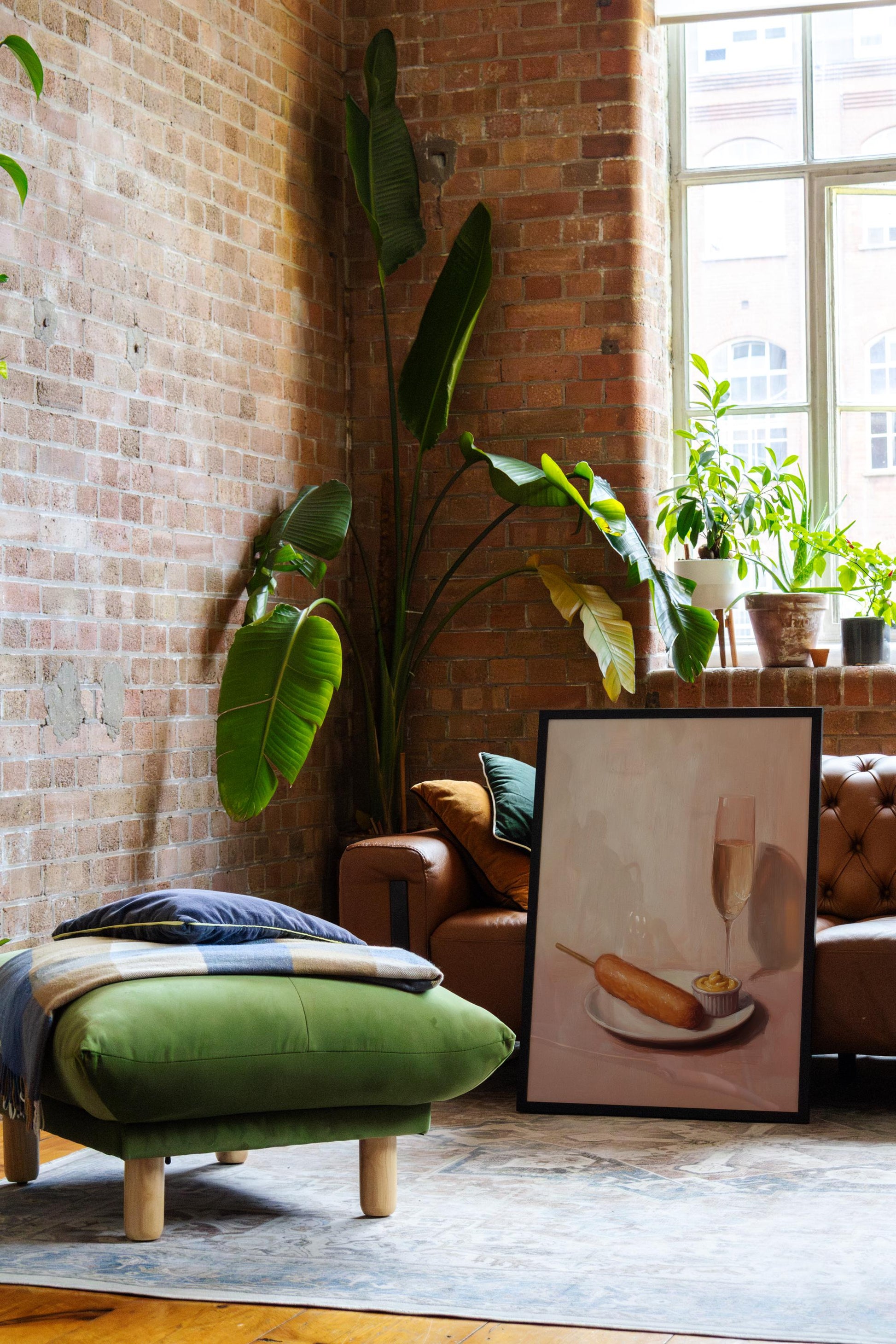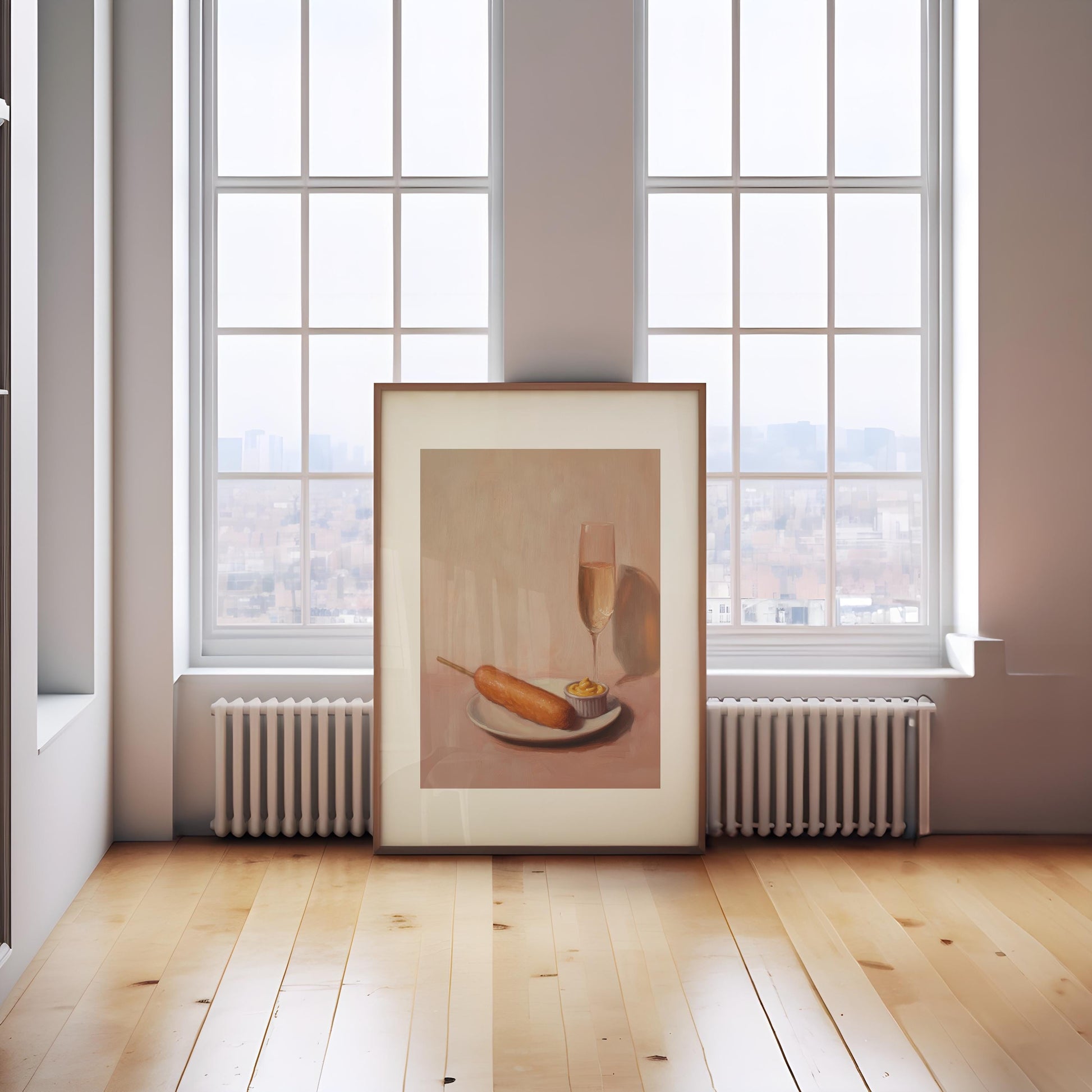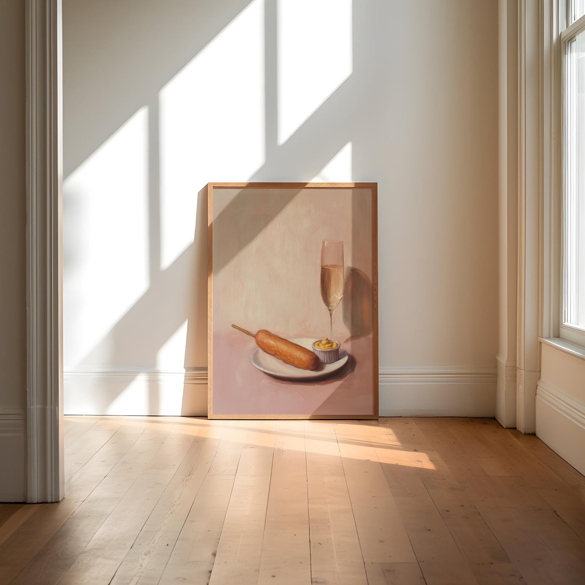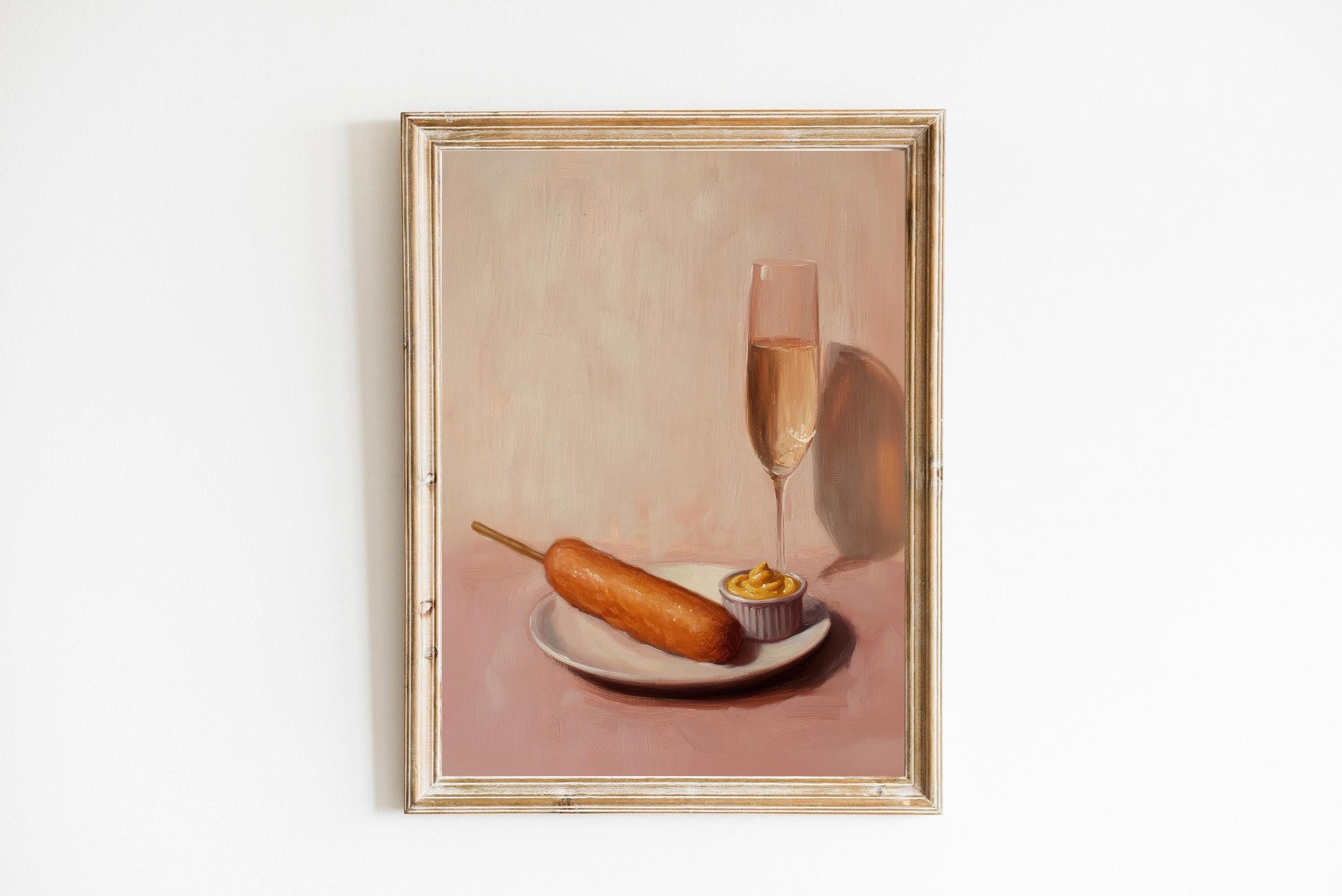 Champagne and Corndog Fine Art Print | Cute Quirky Whimsical | Cocktail Art Bar Cart Decor | Trendy Home Wall Art | Corndog Wall Art Gift