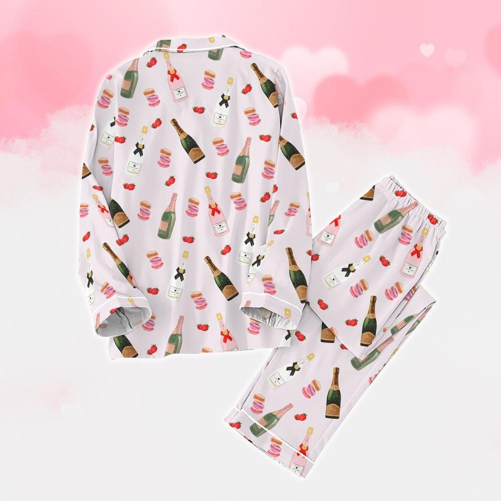 Champagne Wine Pajamas Set, Strawberry Holiday Pajamas, Macaron Cake Pajamas Women, Matching Family Pajamas, Soju Lover Shirt, Gift For