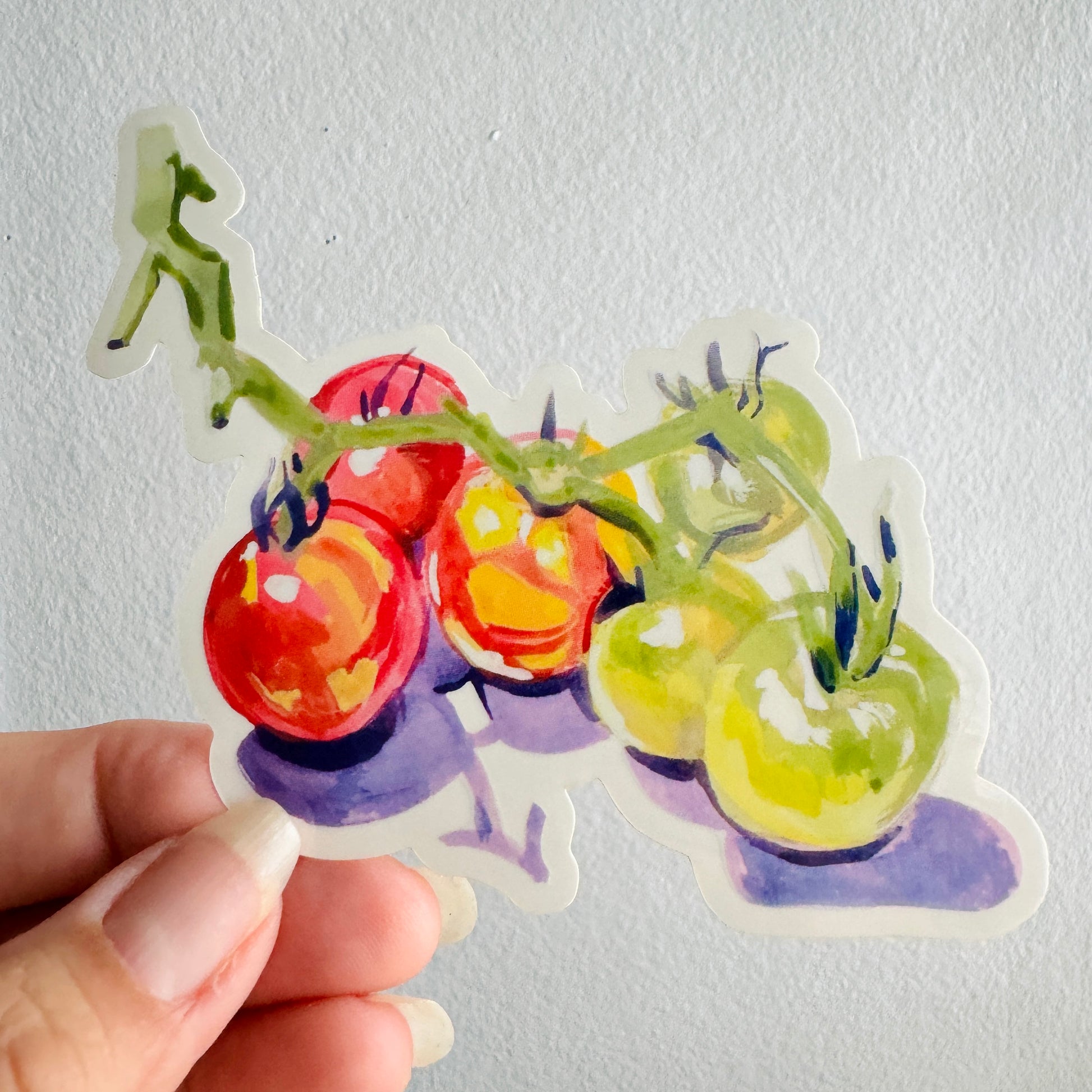 Cherry Tomatoes| Painted Illustration Clear Vinyl Sticker | 4.5" Decal Gardening Tomatoes