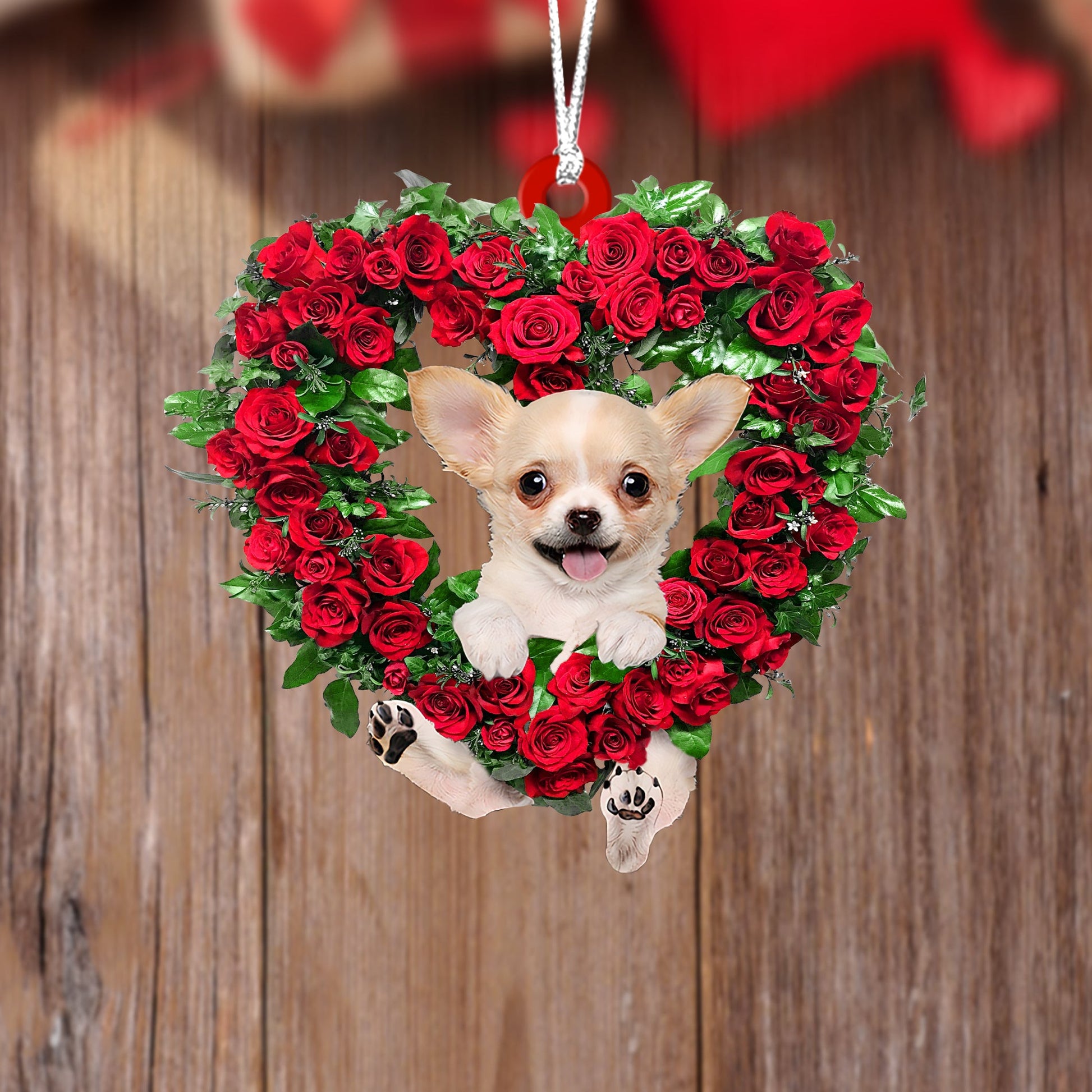 Chihuahua-Heart Wreath Two Sides Christmas Plastic Hanging Ornament, Happy Christmas Ornament, Christmas Gift, Christmas Decoration