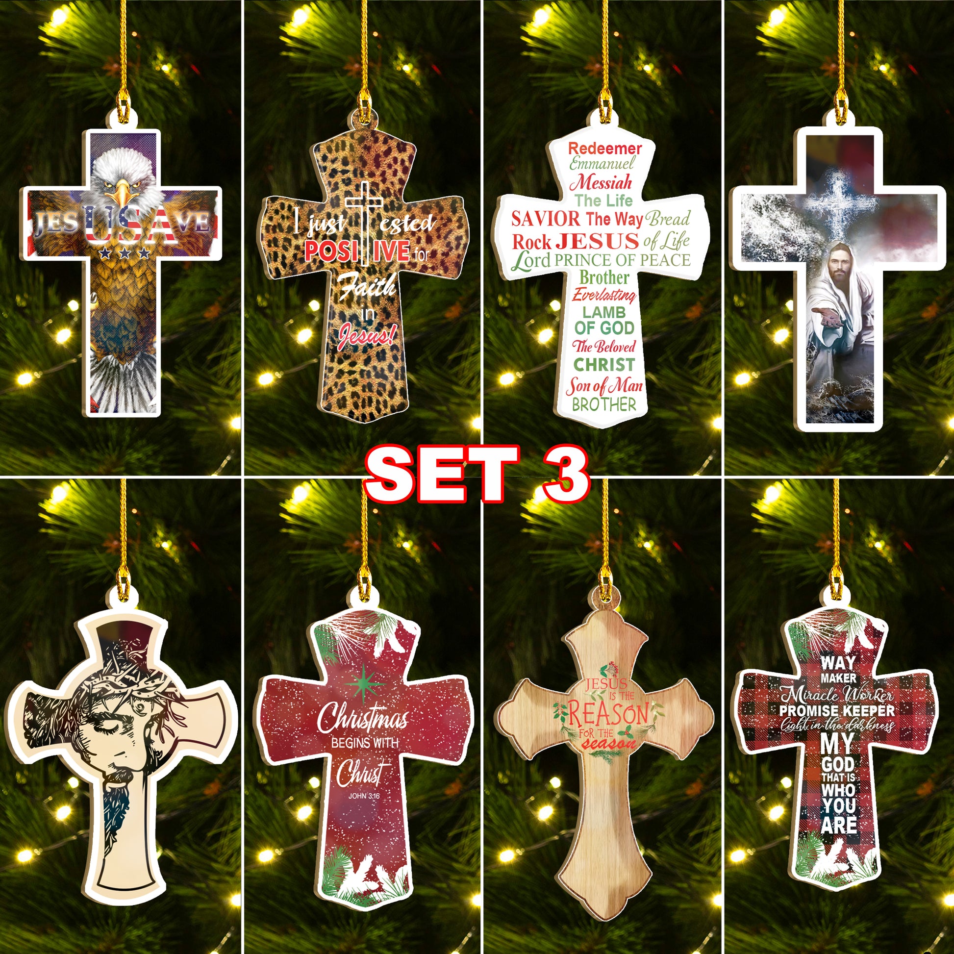 Christmas Begins With Christ Ornaments Set, Jesus Christmas Ornaments Set, Christian Ornament Set Family Gift Idea