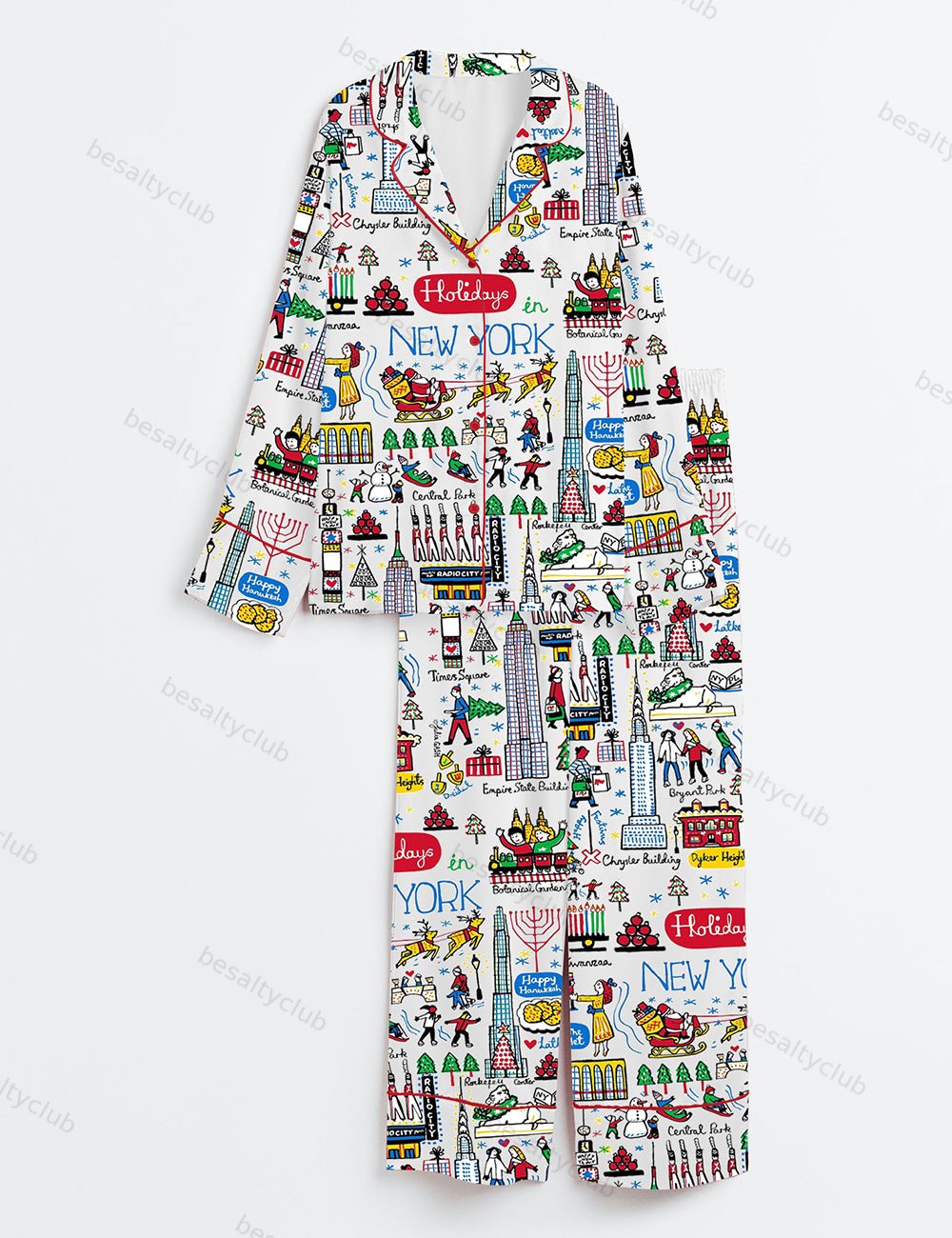 Christmas Holidays In New York Long Sleeve Satin Pajama Set