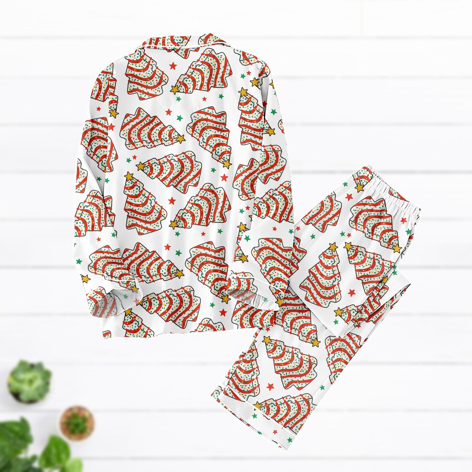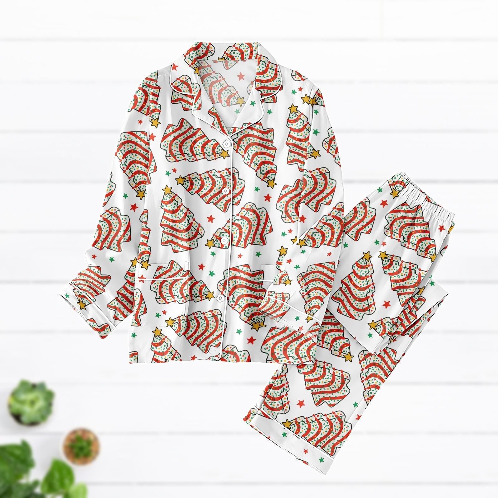 Christmas Tree Satin Pajamas, Long Sleeve Holiday PJs, Red Green Xmas Sleepwear Set, Cozy Christmas Gift for Her, Cute Christmas Lounge