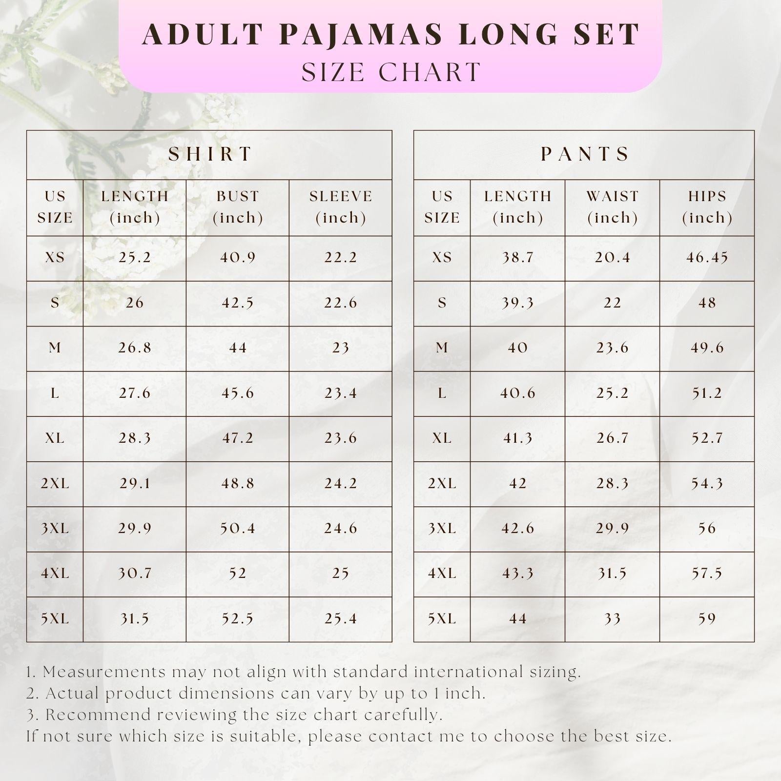 - Adult Long Set: Long-sleeve shirt + long pants.