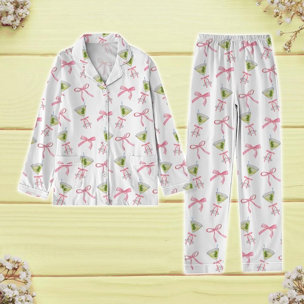 Cocktail Coquette Bow Pajamas Set, Martitni Gift Valentine Pajamas, Bachelorette Party Pajamas Shirt, Tini Time Pajamas, Gift For Her