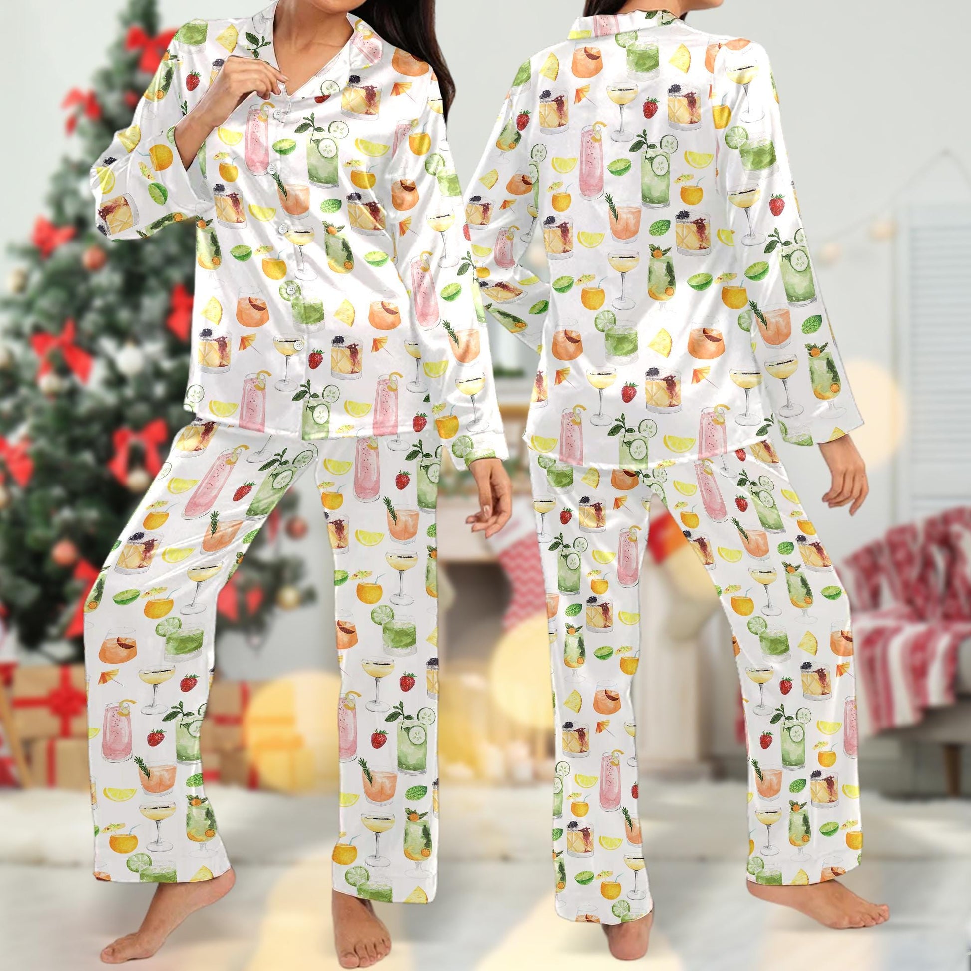 Cocktail Print Pajamas, Alcohol Drinks Pajamas, Gift for Her, Girls Weekend Outfit, Margarita Trendy Pajamas for Her, Margarita Pajamas