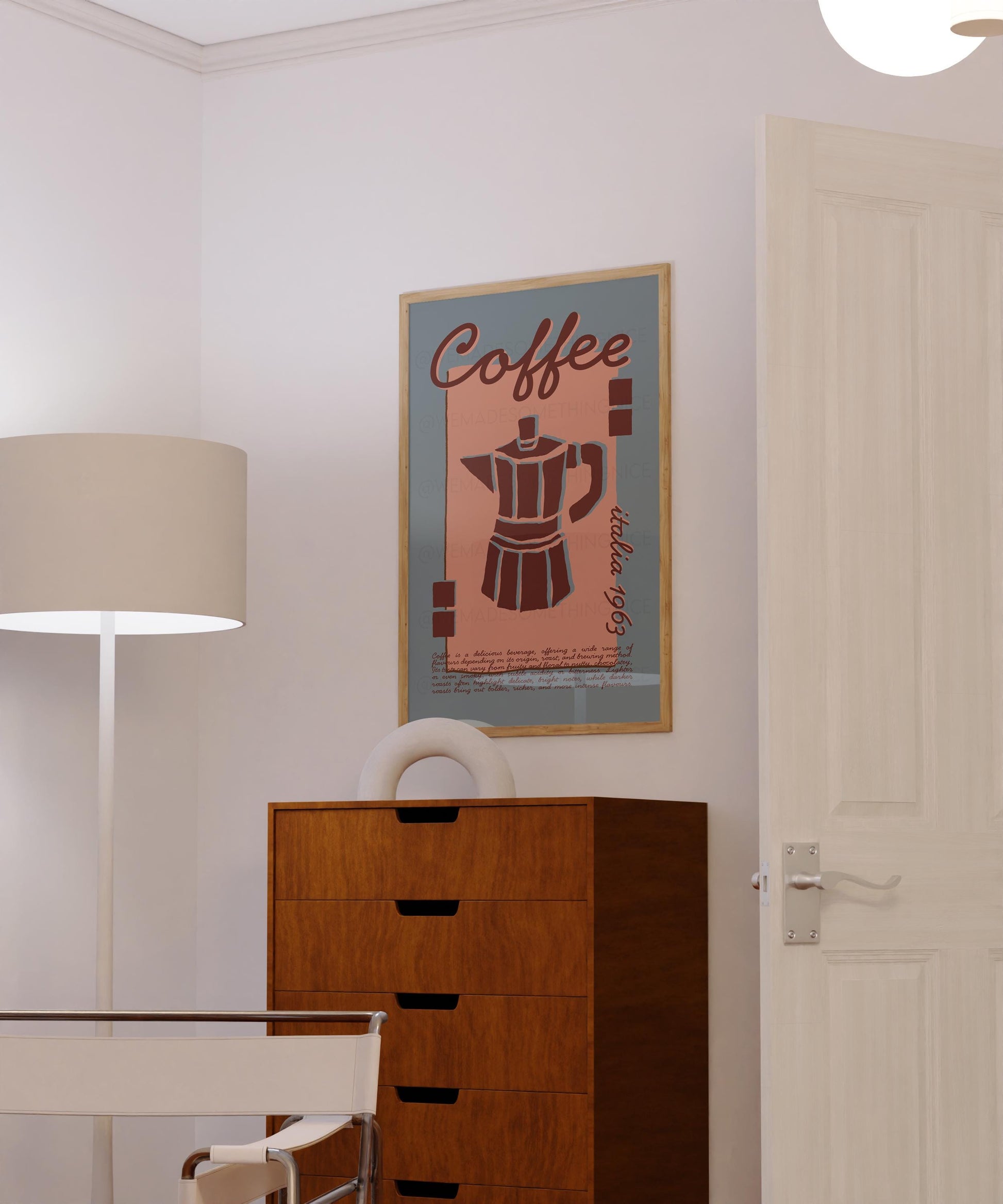 Coffee Poster, Kitchen Art, Kitchen Poster, Kitchen Print, Moka Pot, Modern Kitchen Decor, Retro Poster, Exhibition Poster, Blue Wall Art