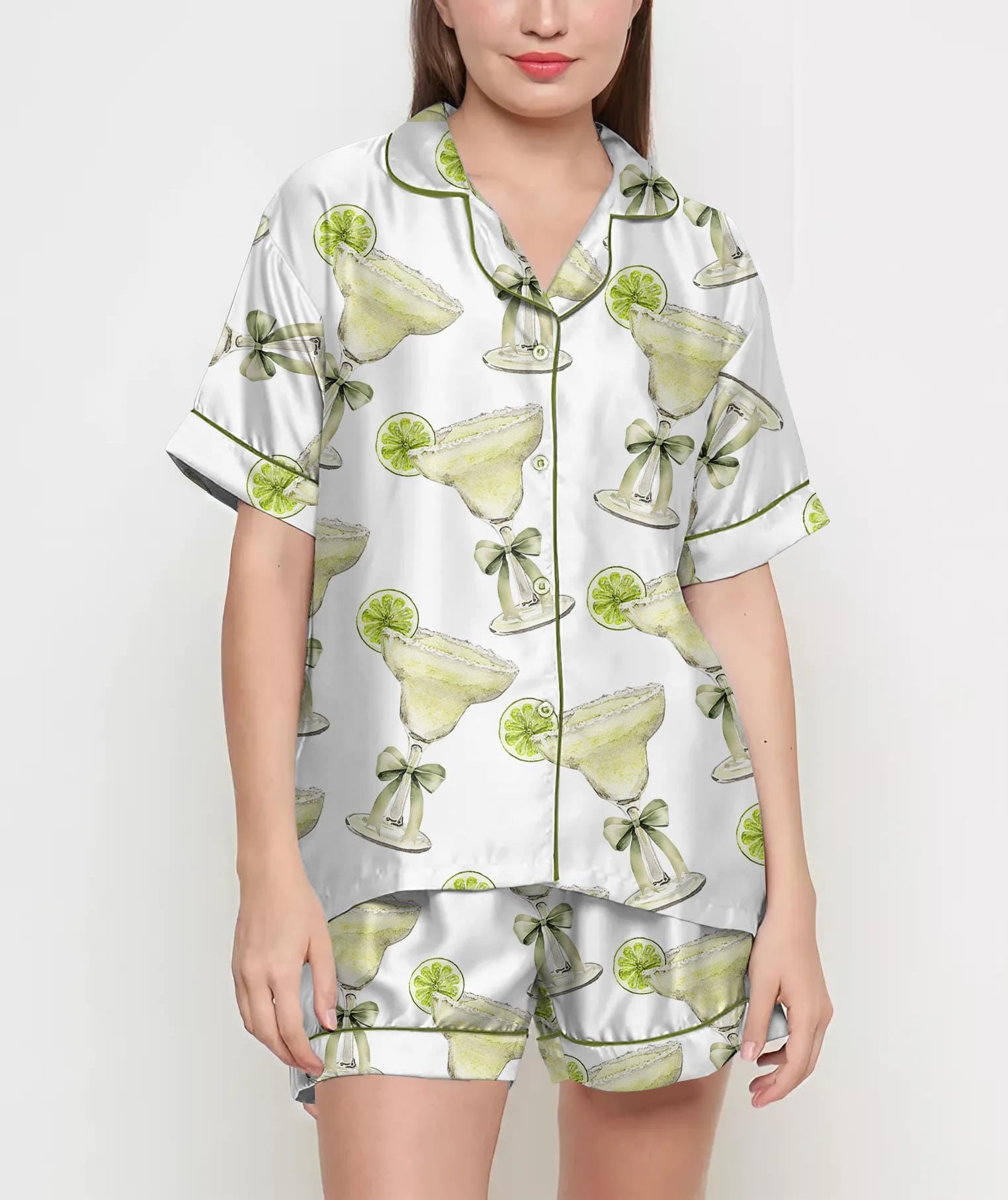 Coquette Margarita Pajamas Satin Set, Lemon Bows Shirt, Mother's Day Gift, Birthday Gift,Pjs For Women, Bridesmaid Gifts, Bachelorette