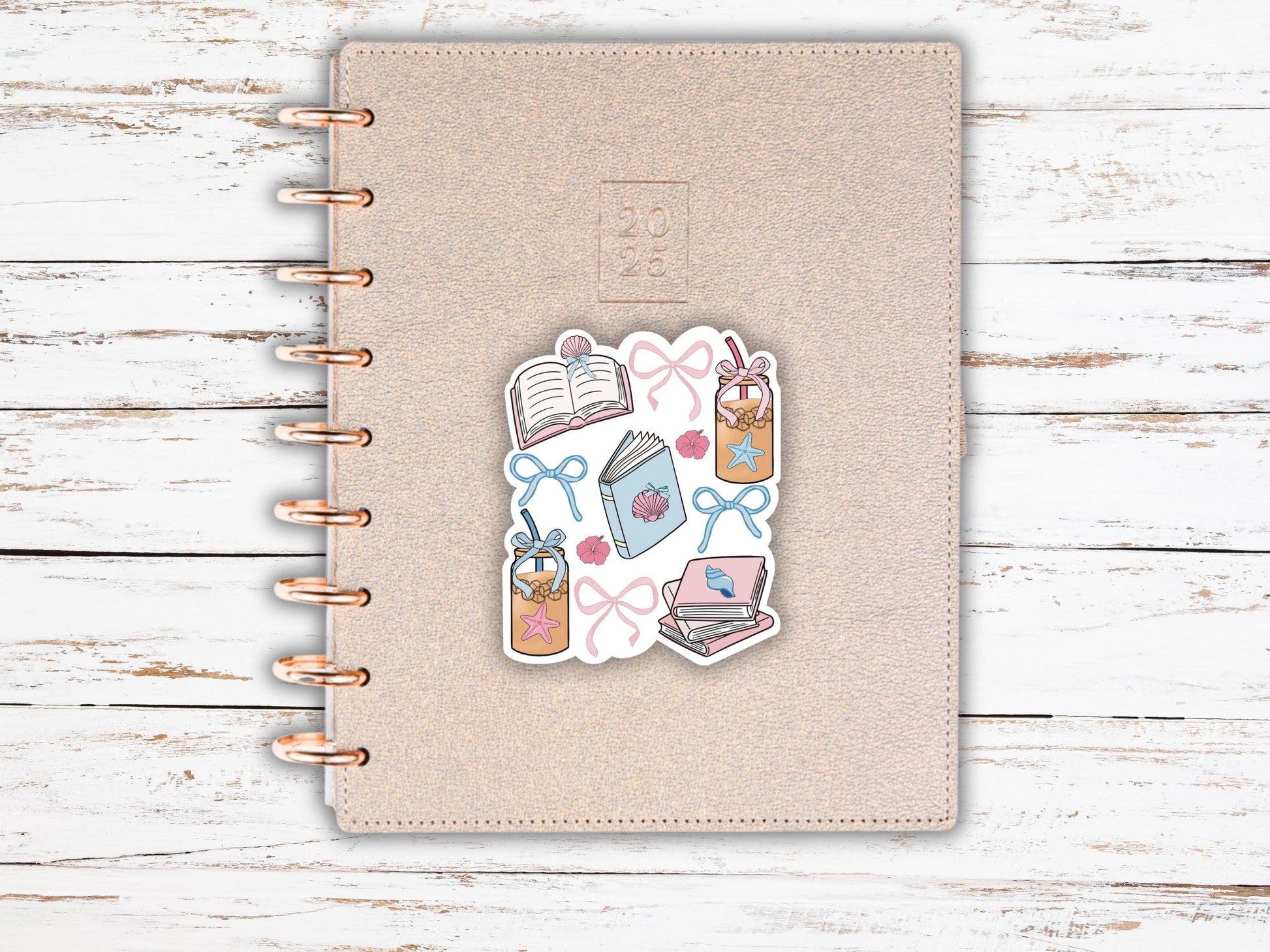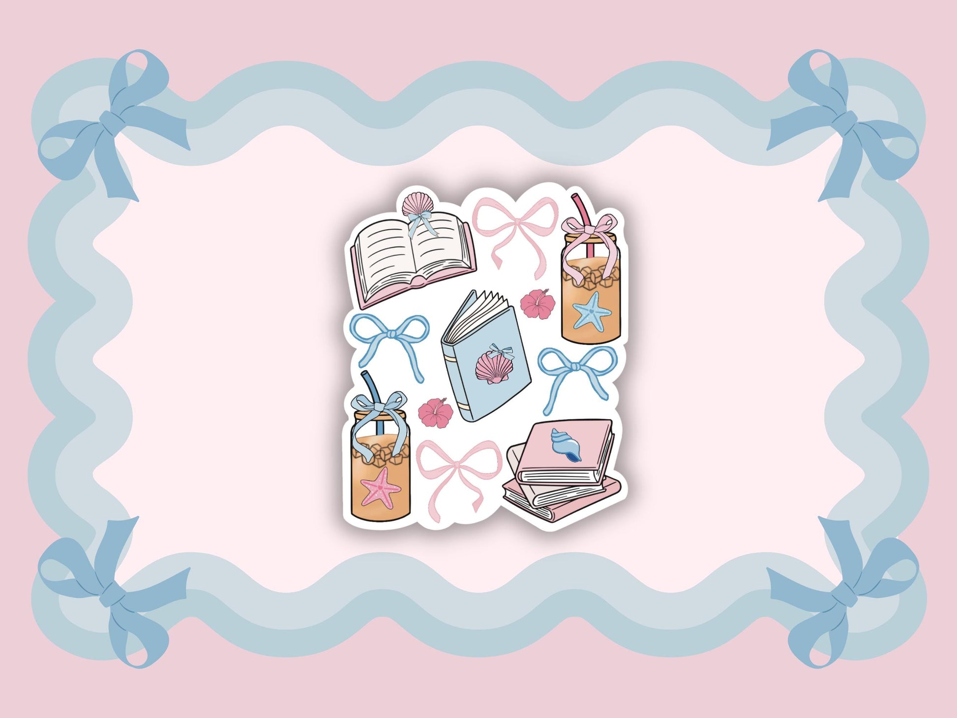 Coquette Summer Essential's Sticker, Book Stack Vinyl Decal, Girly Book Club Sticker, Gift for Book Lover, Cute Iced Coffee Kindle Stickers