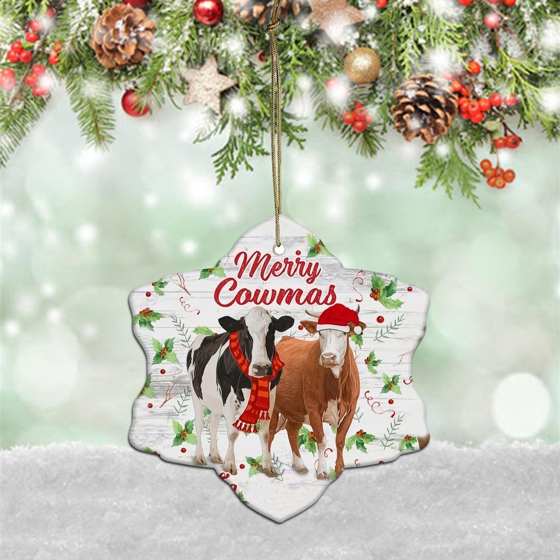 Cow Christmas Snow Flake Ceramic Ornament, Christmas Gift, Christmas Decoration