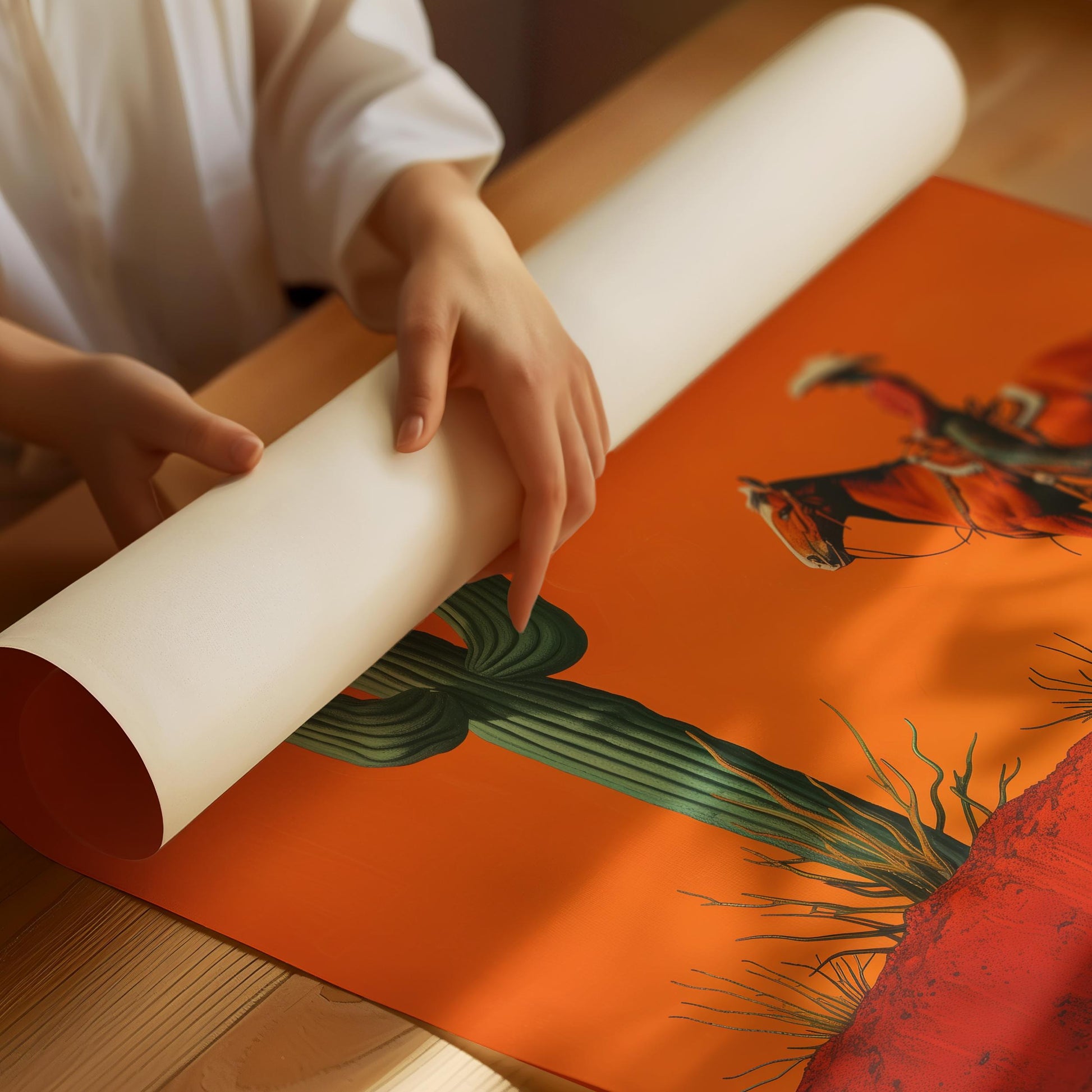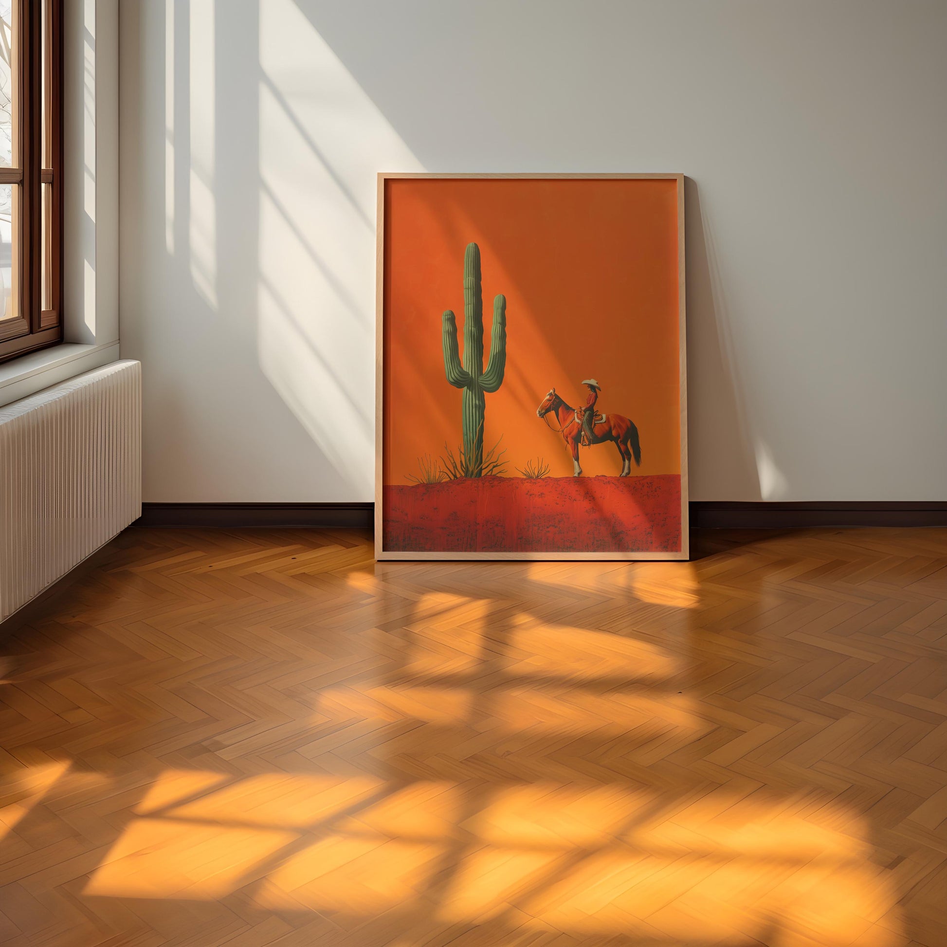 Cowgirl Minimalist Boho Western Illustration, Vintage Southwestern Boho Art, Cowboy Wall Print, Terracotta Sunset, Retro Cowboy Cowgirl Art