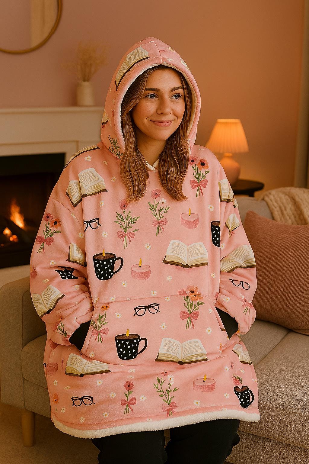Cozy Fluffy Hooded Blanket Hoodie - Warm Winter Wearable Throw, Book Lover Gift, Christmas Present, Soft Comfortable Sweatshirt, Snuggle Up