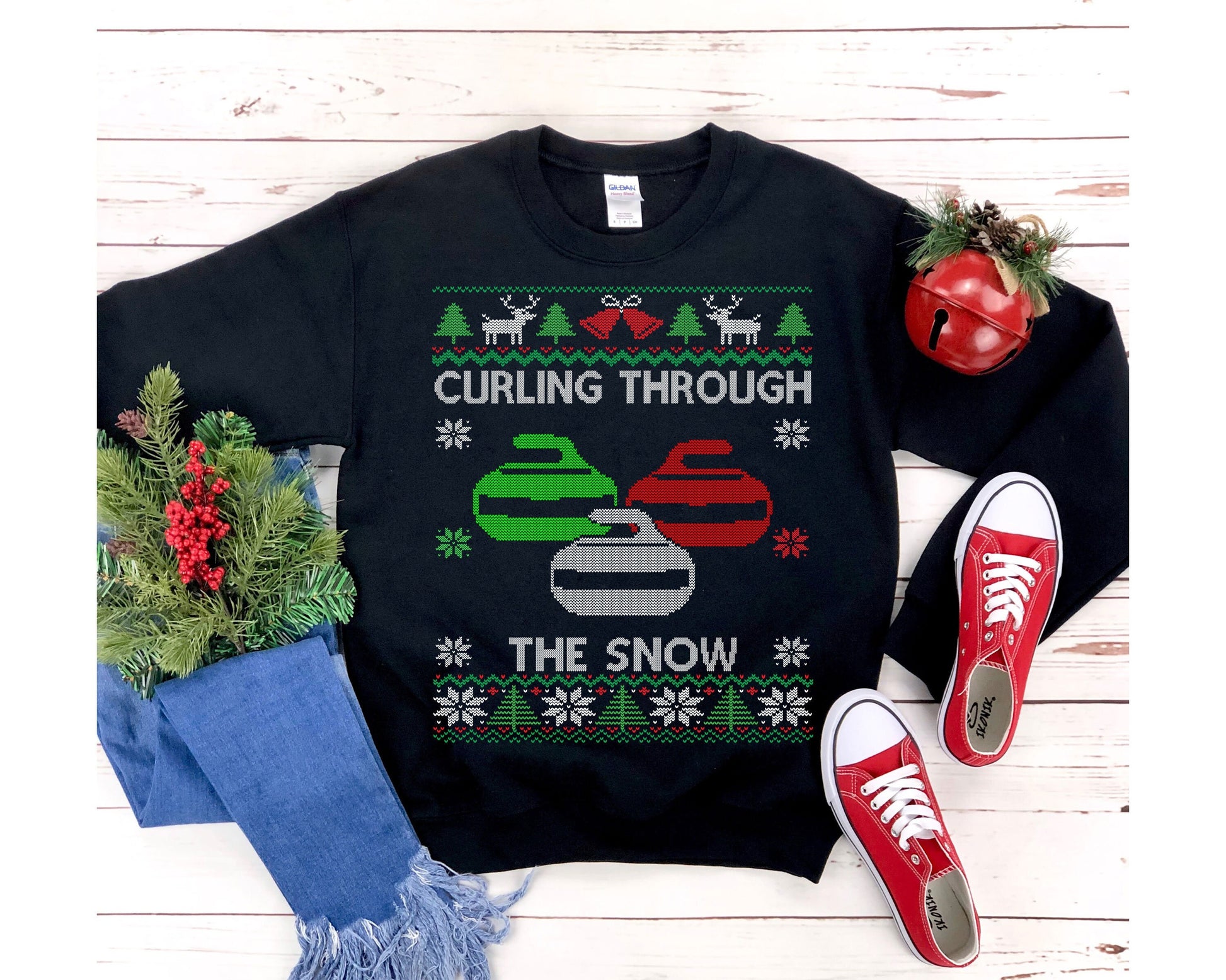 Curling Through The Snow | Curling Ugly Christmas Sweatshirt | Funny Curler Gift | Curling Team Shirt | Curling Fan Shirt