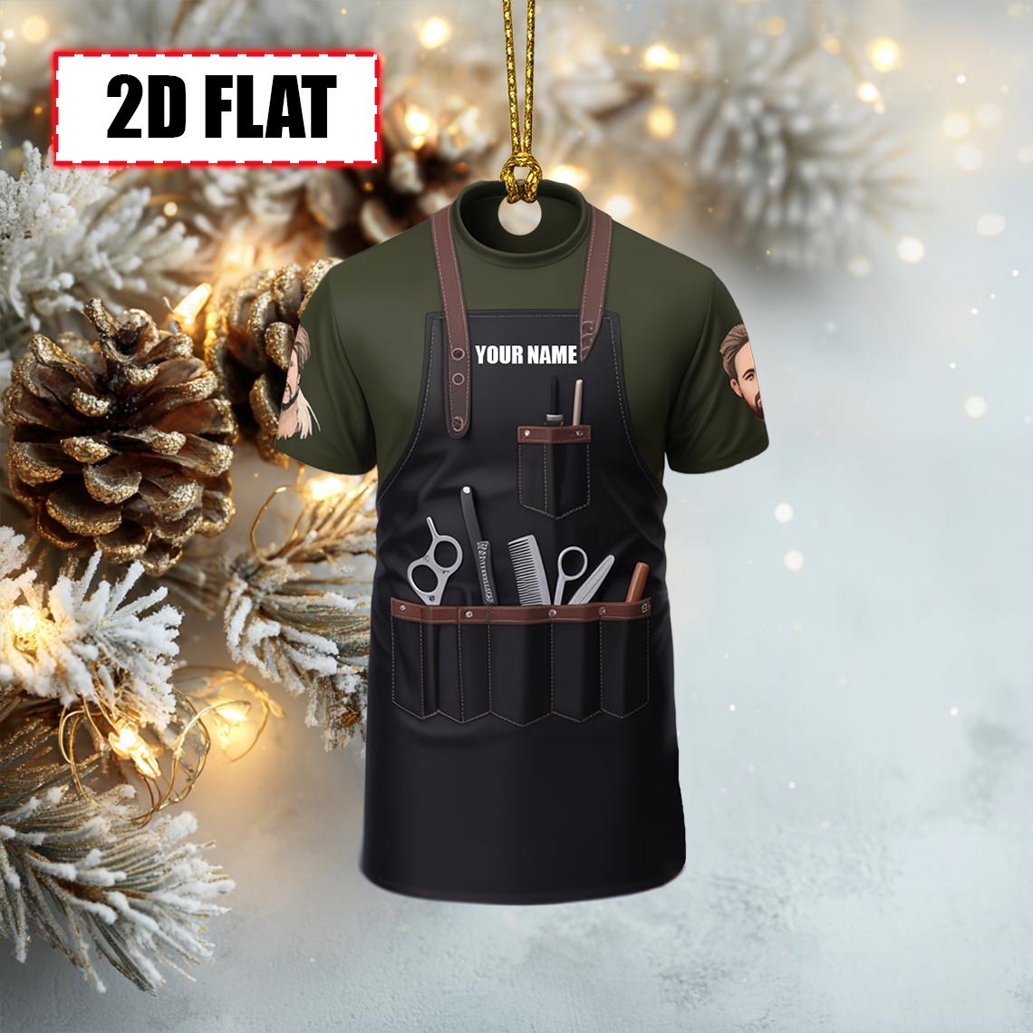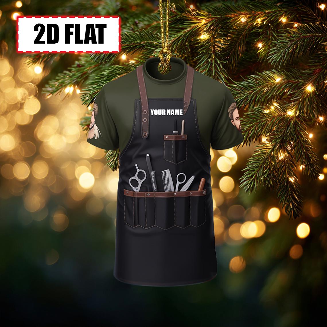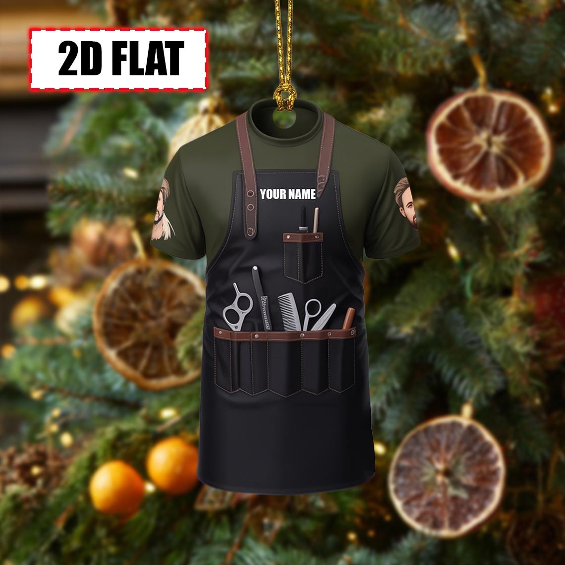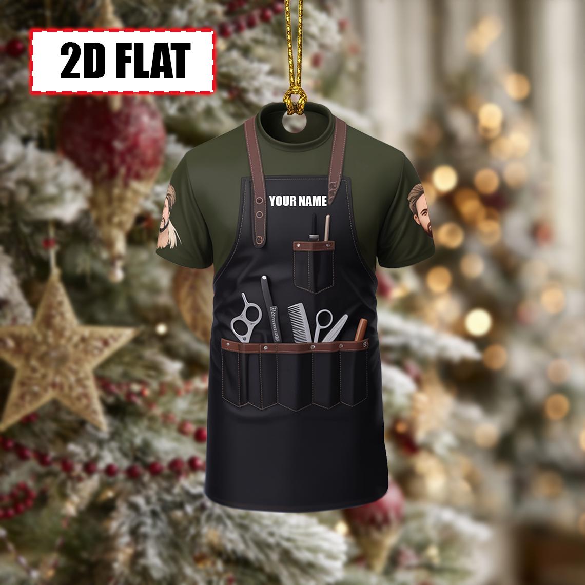 Custom Barber Christmas Ornament, Tree Hanging Decor, Flat 2D Acrylic Hairstylist Apron Keepsake, Personalized Gift for Barber Stylist