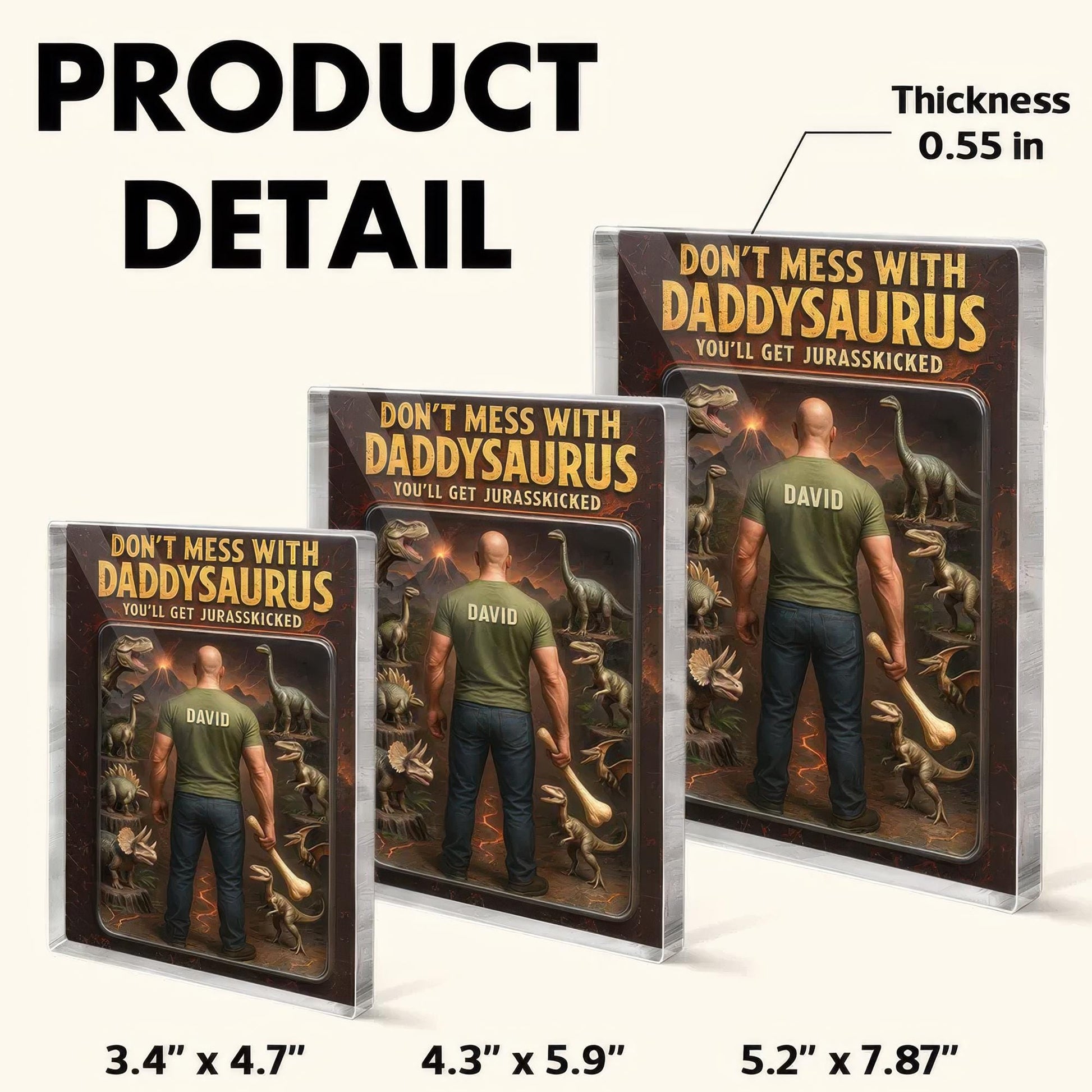 Custom Daddysaurus Acrylic Block Gift, Personalized Dinosaur Dad Figurine with Name, Funny Jurassic Decor, Unique Father’s Day Gift for Him