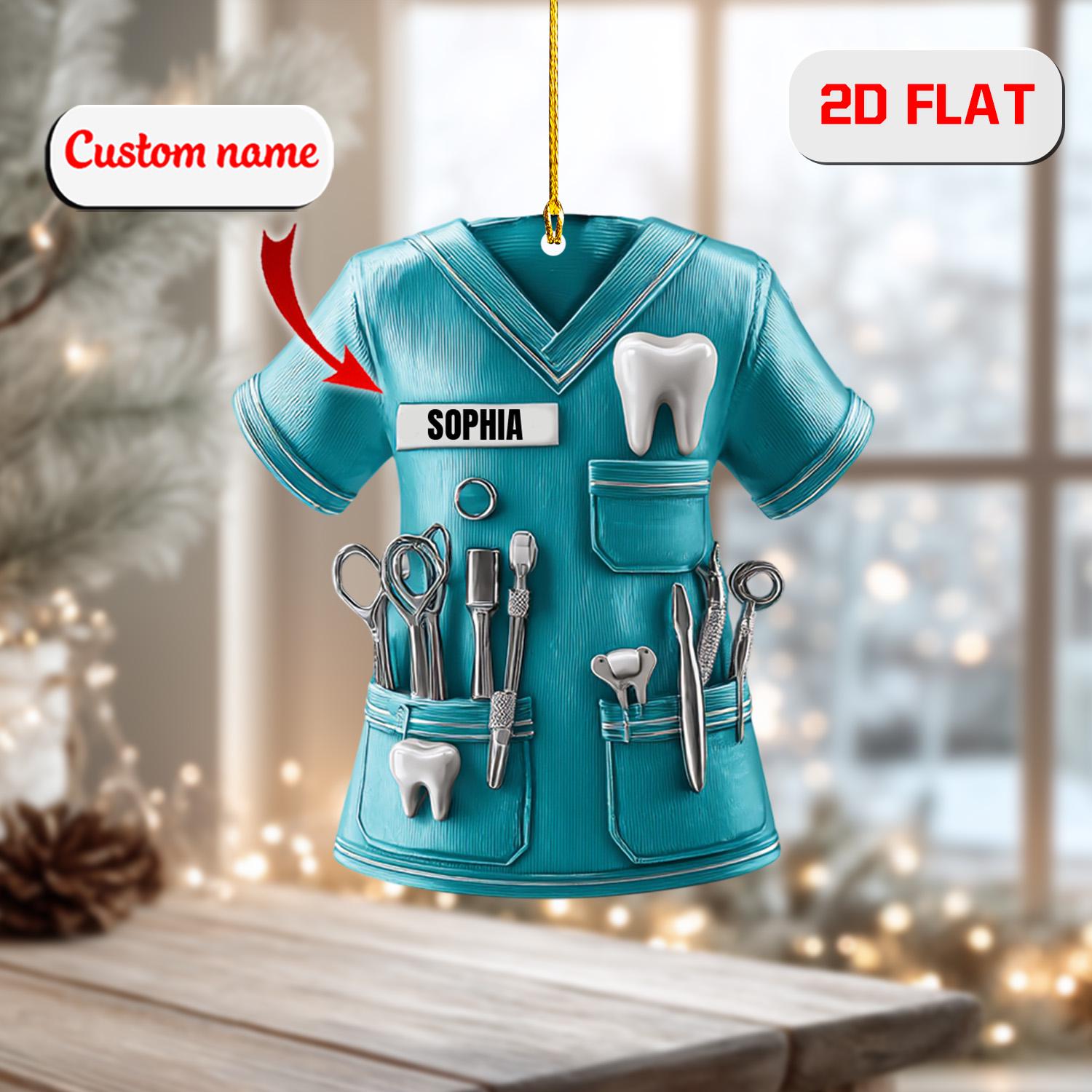 Custom Dental Scrub Ornament 2D Flat, Personalized Dentist Christmas Ornament, Dental Hygienist Acrylic Ornament Gift for Xmas Tree