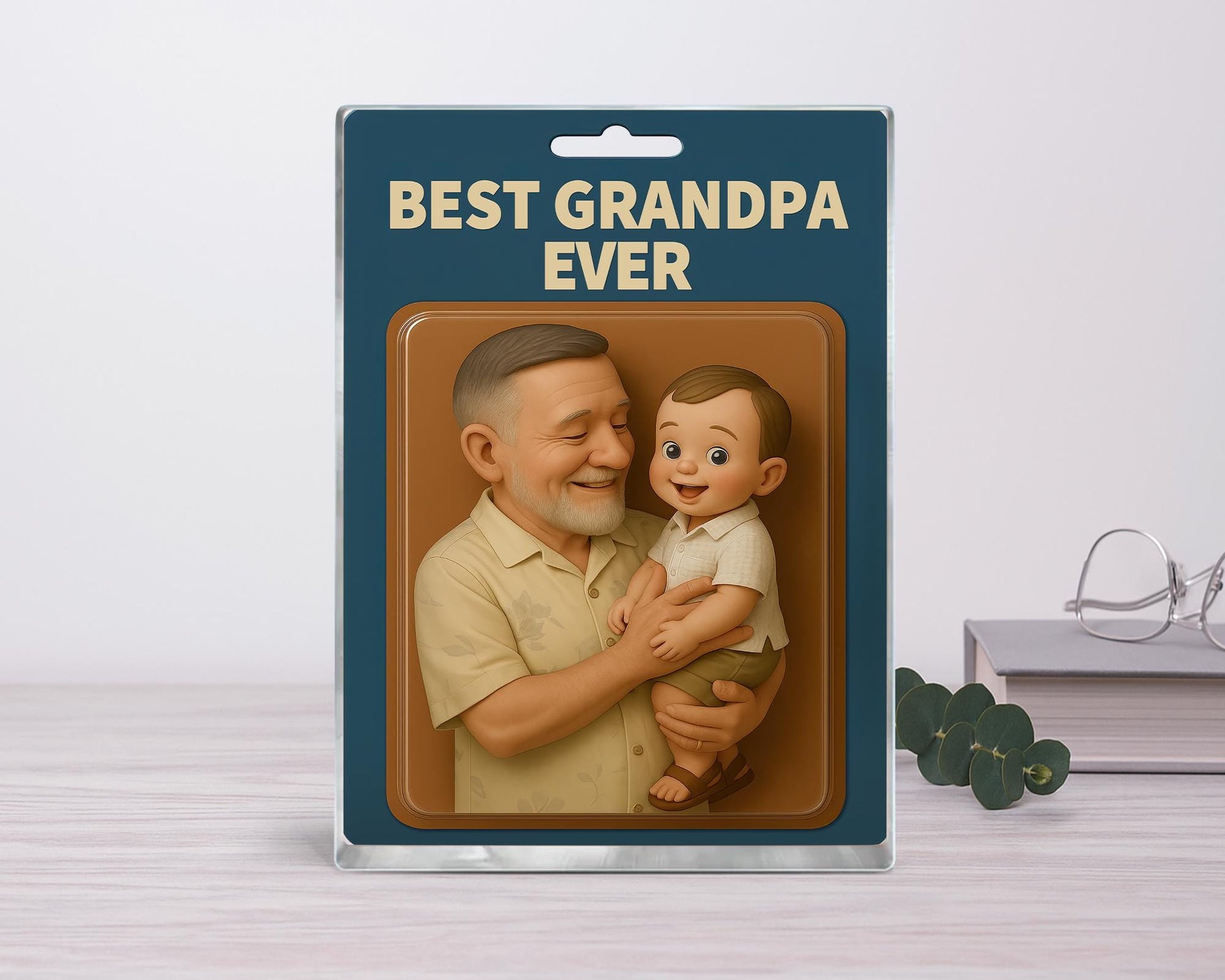 Custom Father's Day Gift for Grandpa, Personalized Photo Dad And Kids Action Figure Acrylic Block, Best Grandpa Ever Block, Gift for Husband