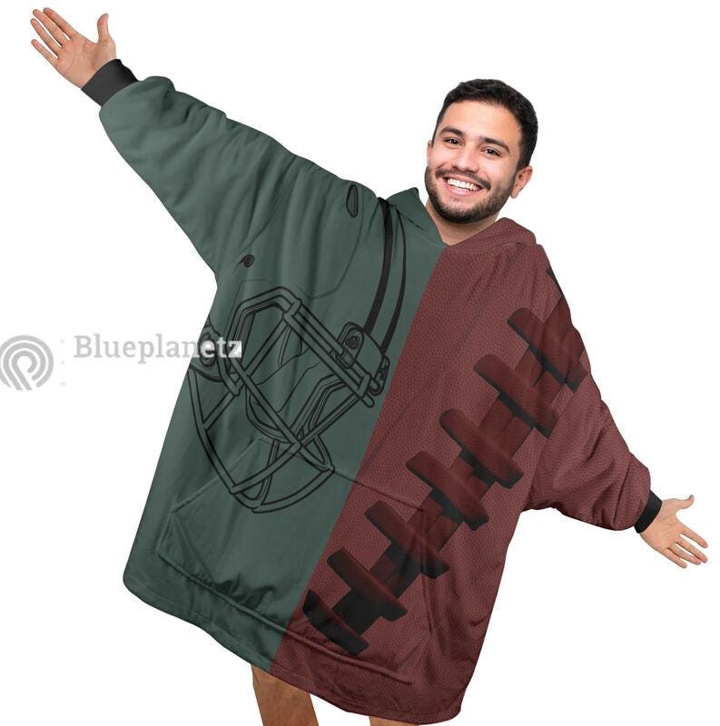 Custom Football Team Hoodies Blanket, Personalized Wearable Hoodies Blanket, Custom Team Name Oversized Blanket, Football Fan's Gift