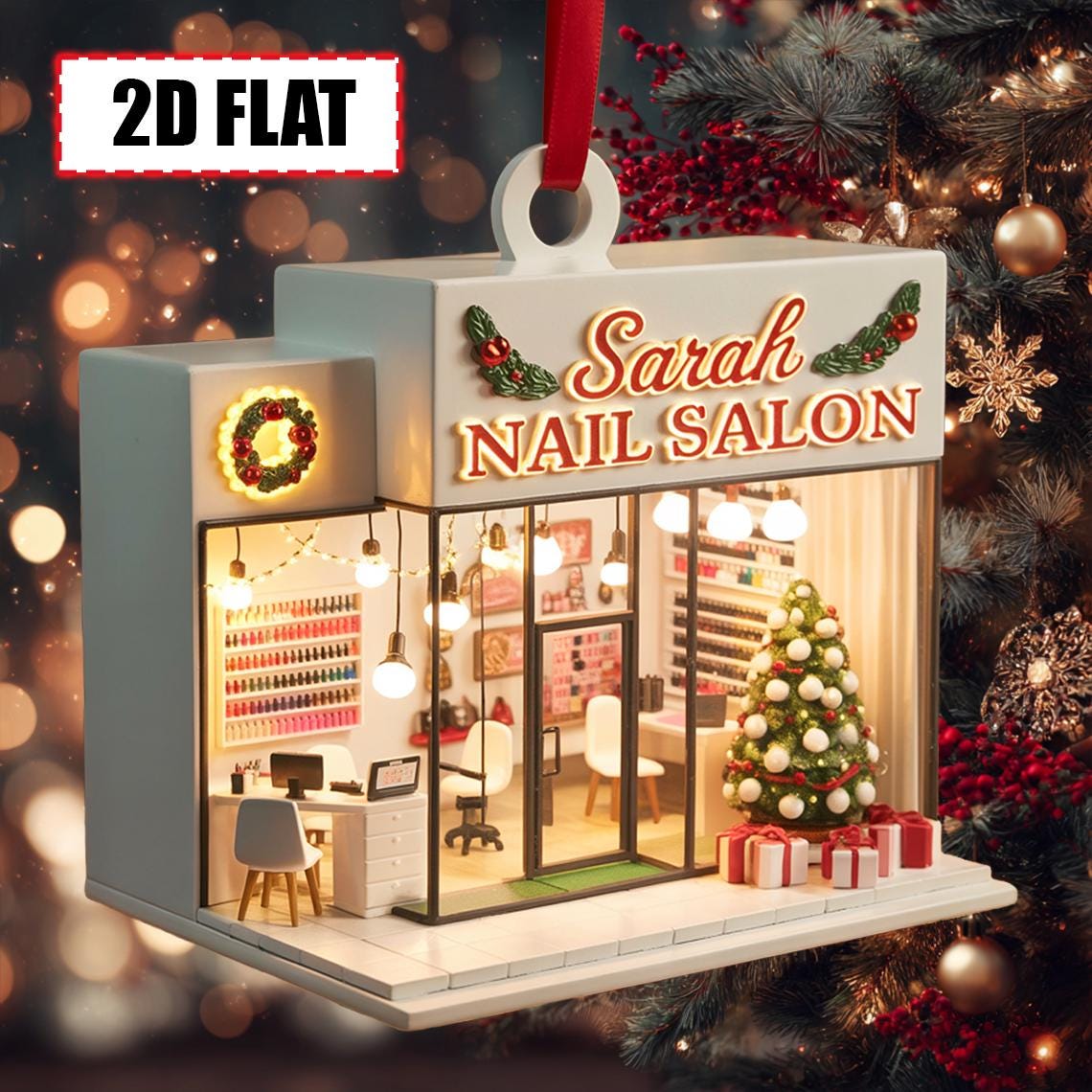 Custom Nail Salon Christmas Ornament – Flat 2D Acrylic Tree Decoration, Personalized Salon Gift, Beauty Shop Holiday Decor Keepsake