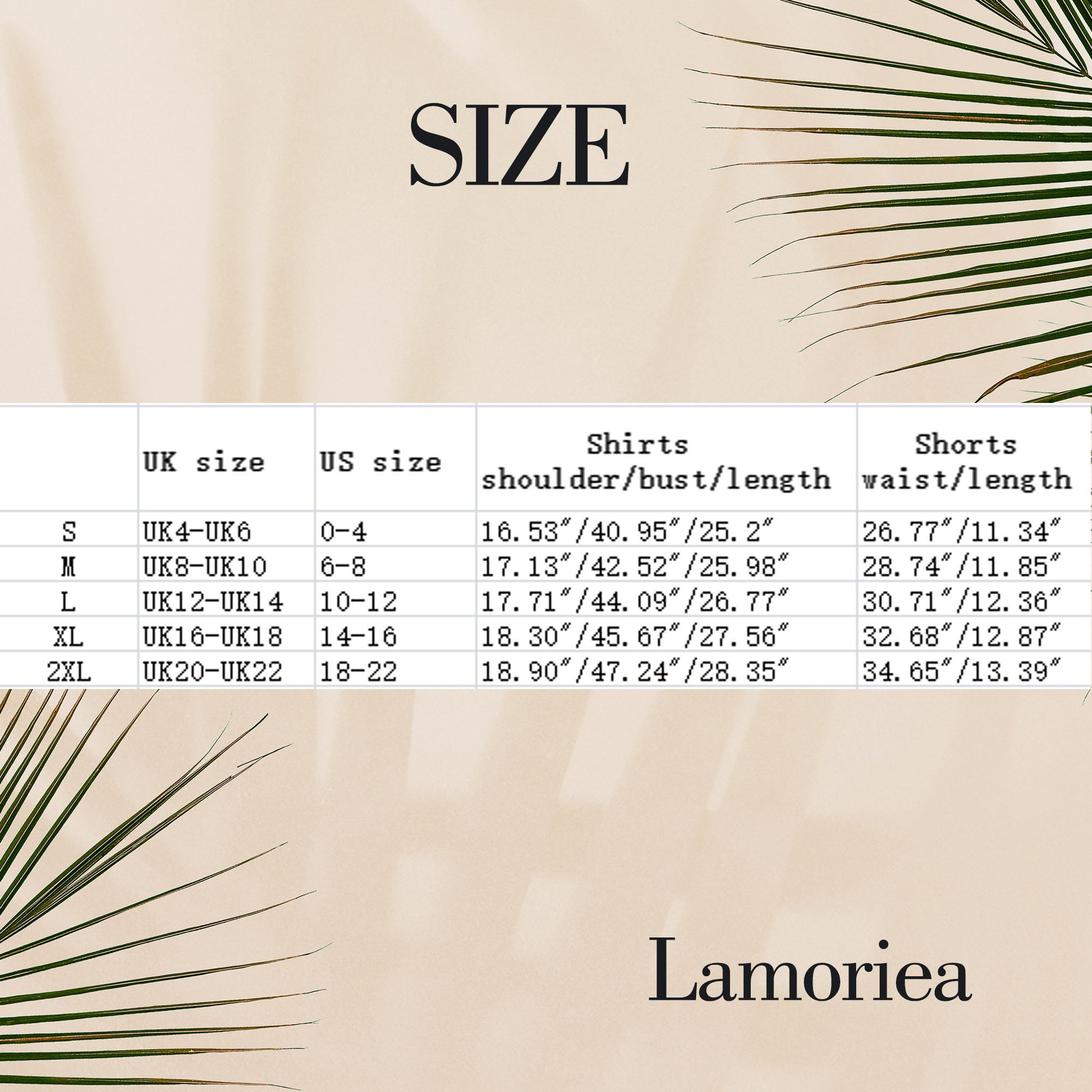 | Size | Top | Shorts | |||||
