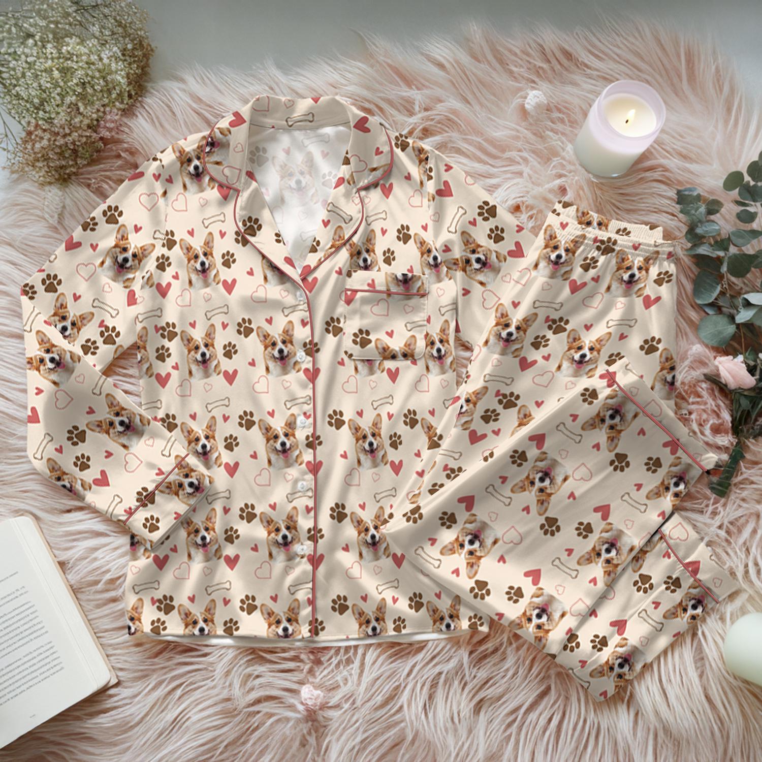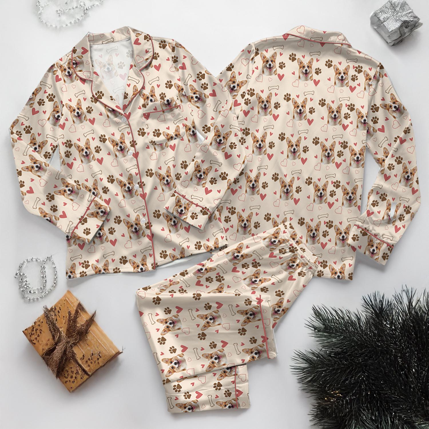 Customized Pet Satin Pajamas Set, Pet Face Pajamas, Dog Lover PJs, Family Pajamas, Pet Portrait, Matching Pajamas