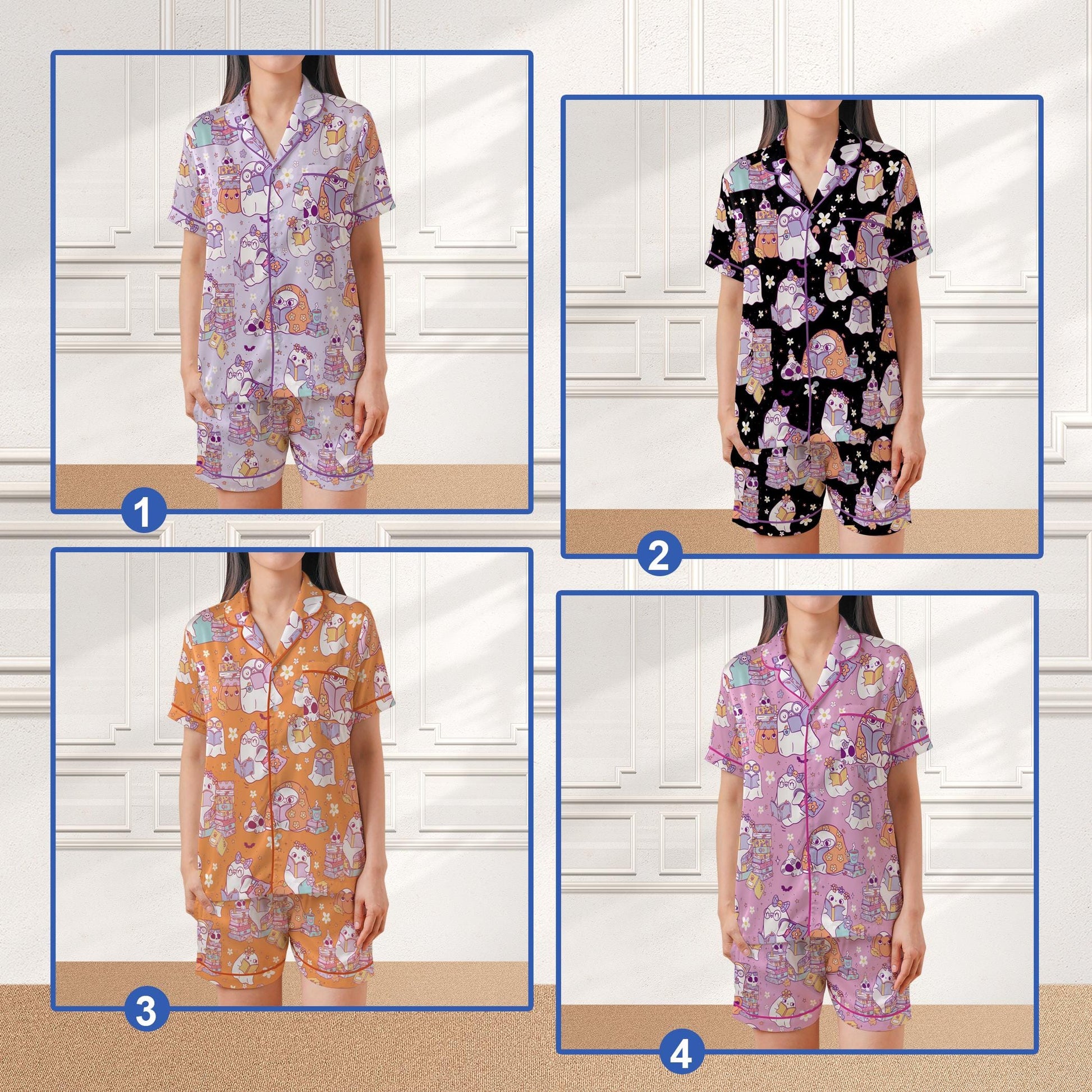 Cute Bookish Ghost Halloween Satin Pajamas, Book Lover, Reading Boo, Ghost Reading Books Halloween Pajamas, Librarian Halloween Sleepwear