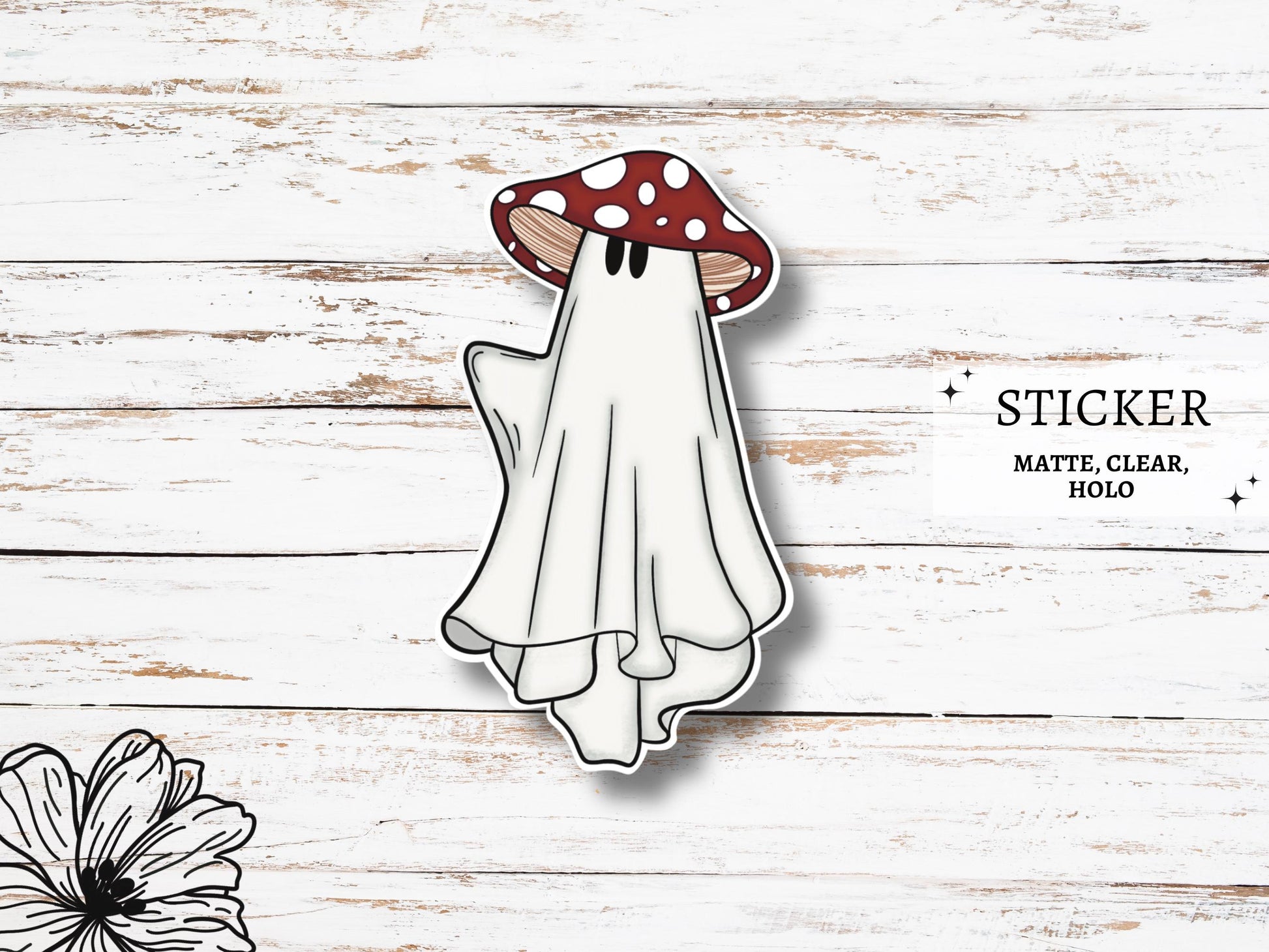 Cute Ghost Sticker | Ghost Mushroom Hat | Ghost Vinyl Sticker | Ghost Decals | Fall Stickers | Halloween Stickers | Kindle Die Cut Sticker
