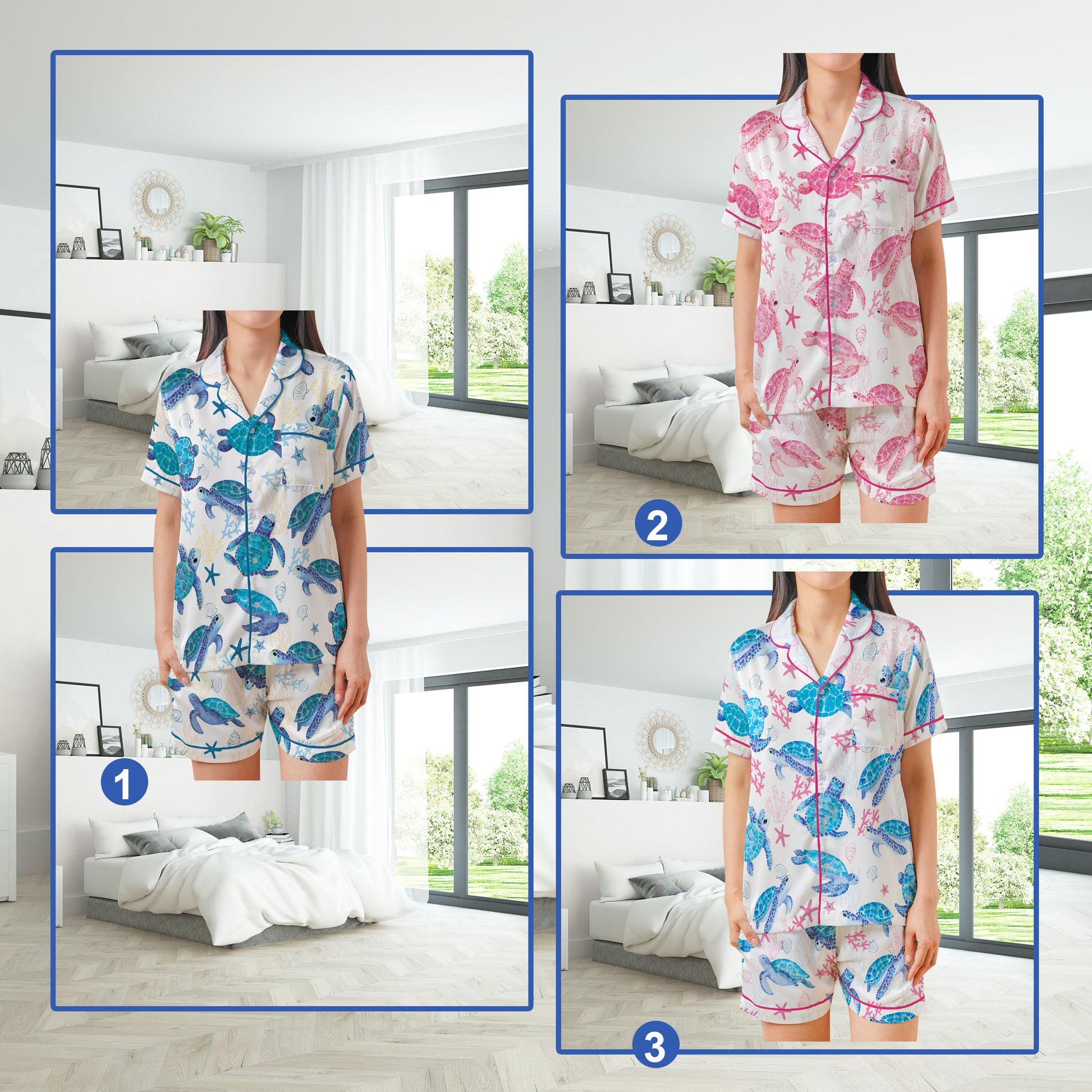 Cute Undersea Turtle Pajamas Set, Summer Vibes Pajama Sleepwear Short Long Sleeve Pajama Set, Sea Turtle Home Wear, Turtle Lover Gift