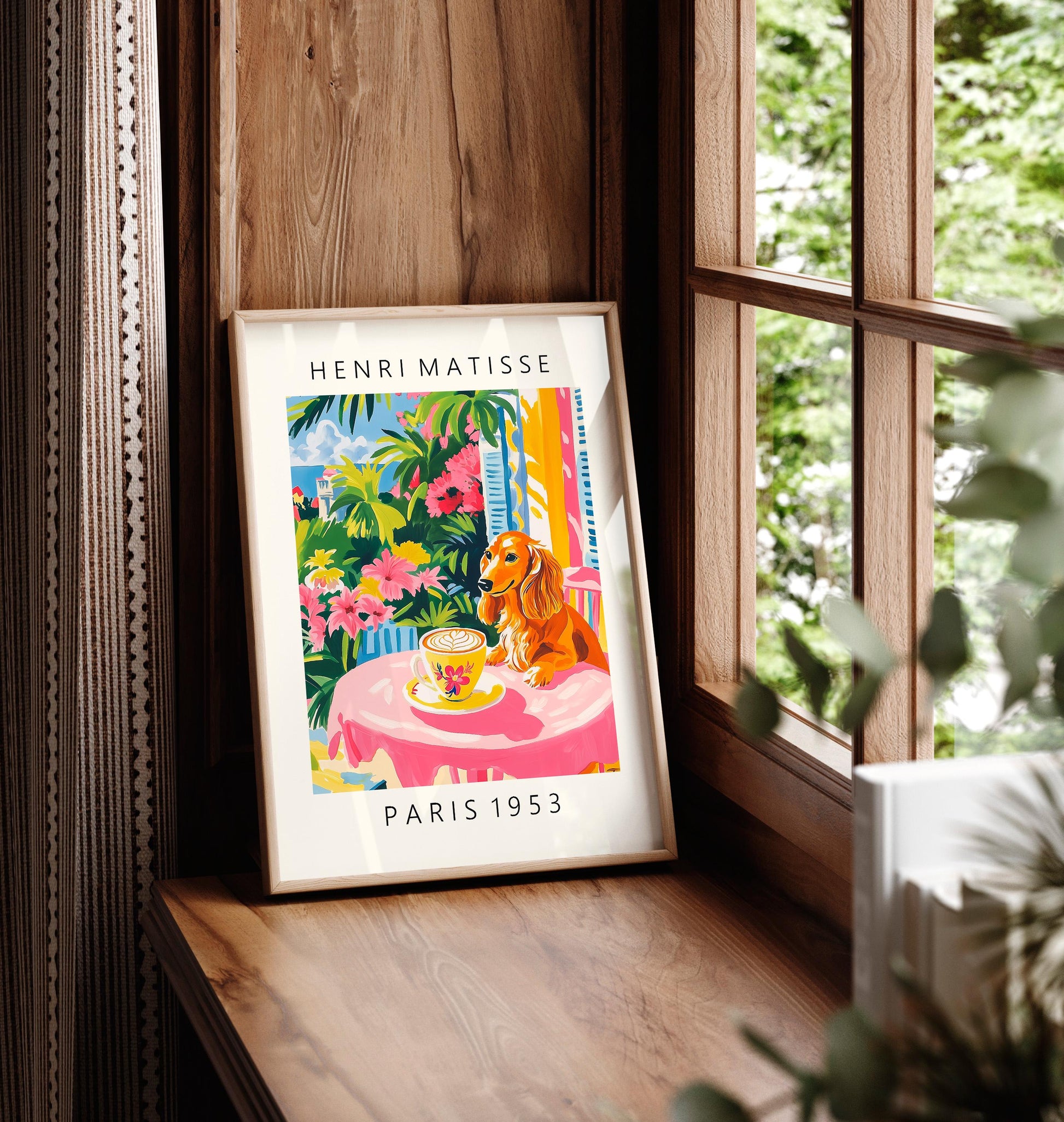 Dachshund Coffee Print: Matisse Style Pink Kitchen Cafe Art