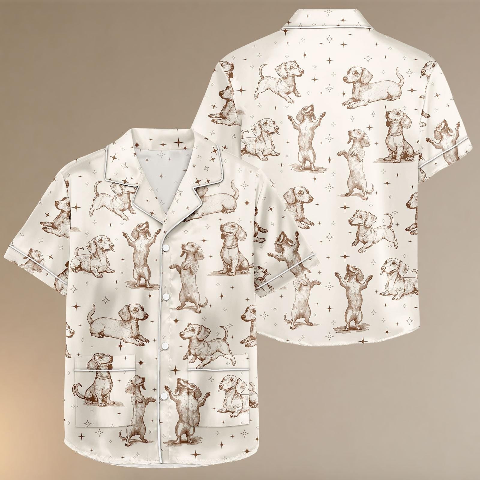 Dachshund Satin Pajamas Set, Dog Sleepwear for Dog Lovers, Cute Cartoon Shirt and Shorts Loungewear