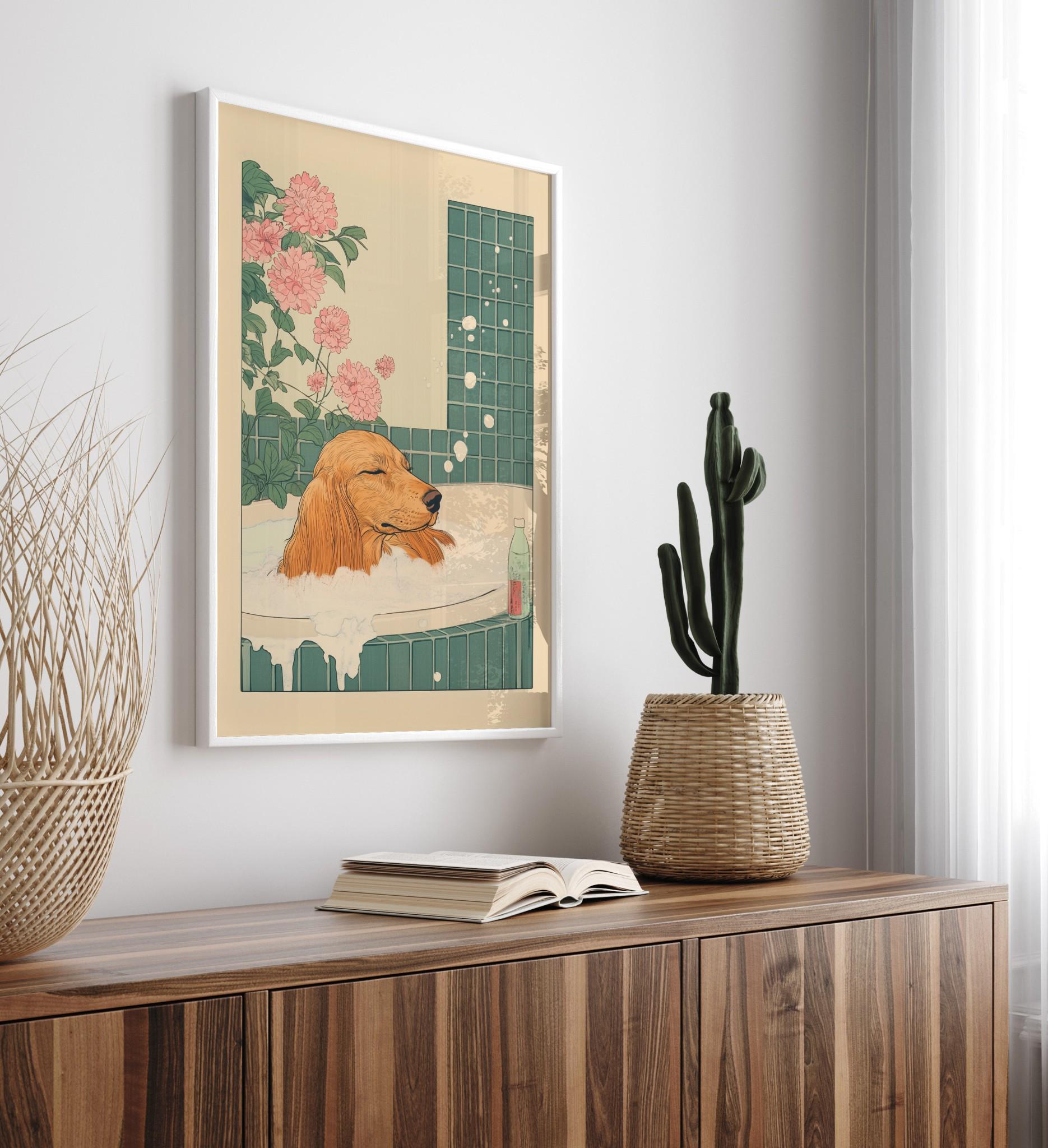 Dachshund Wall Art: Japanese Style Bathroom Print