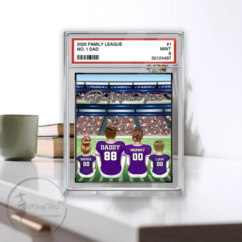 Daddy's Dream Team No. 1 American Football Acrylic 2D Block, Sport Dad Decor, Dad & Kids Plaque, Custom Father's Day Gift from Son Daughter