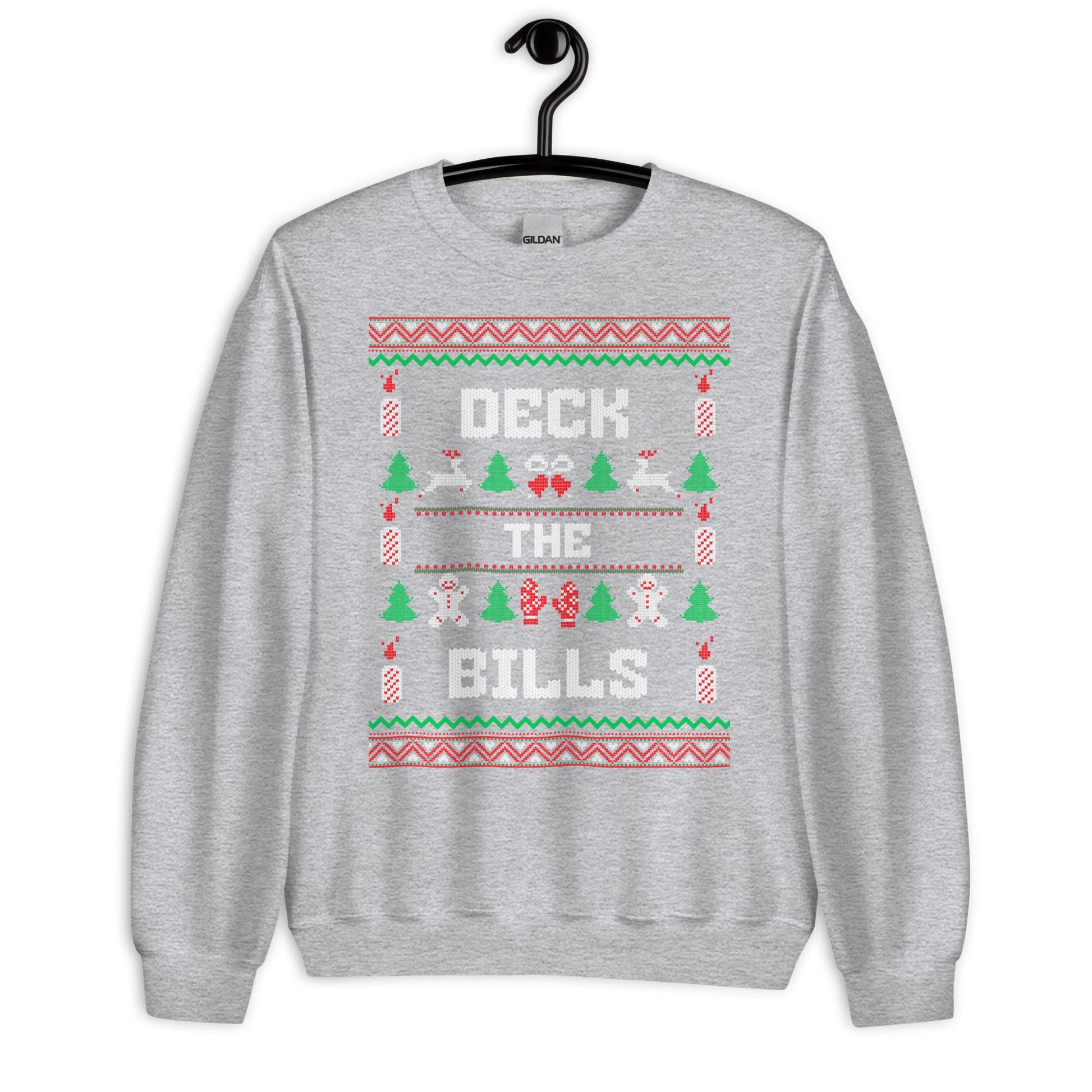 Deck the Bills Funny Christmas Jumper | Ugly Style Festive Knit | Sarcastic Holiday Jumper for Parties | Novelty Xmas Gag Gift