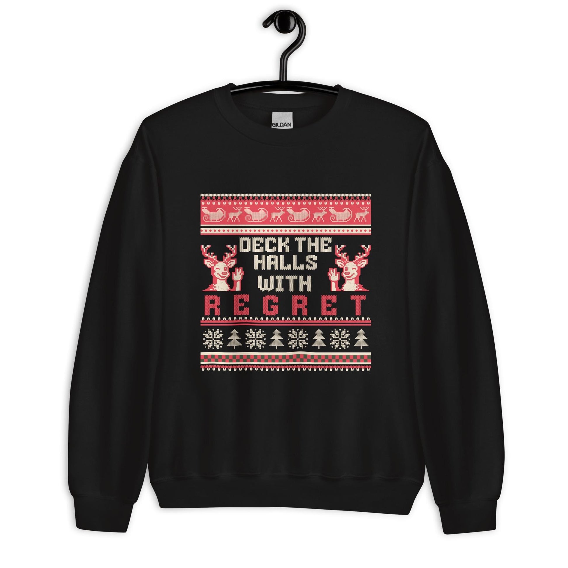 Deck the Halls with Regret Christmas Jumper | Funny Dark Humour Xmas | Ugly Holiday Knitwear | Alternative Secret Santa Gift