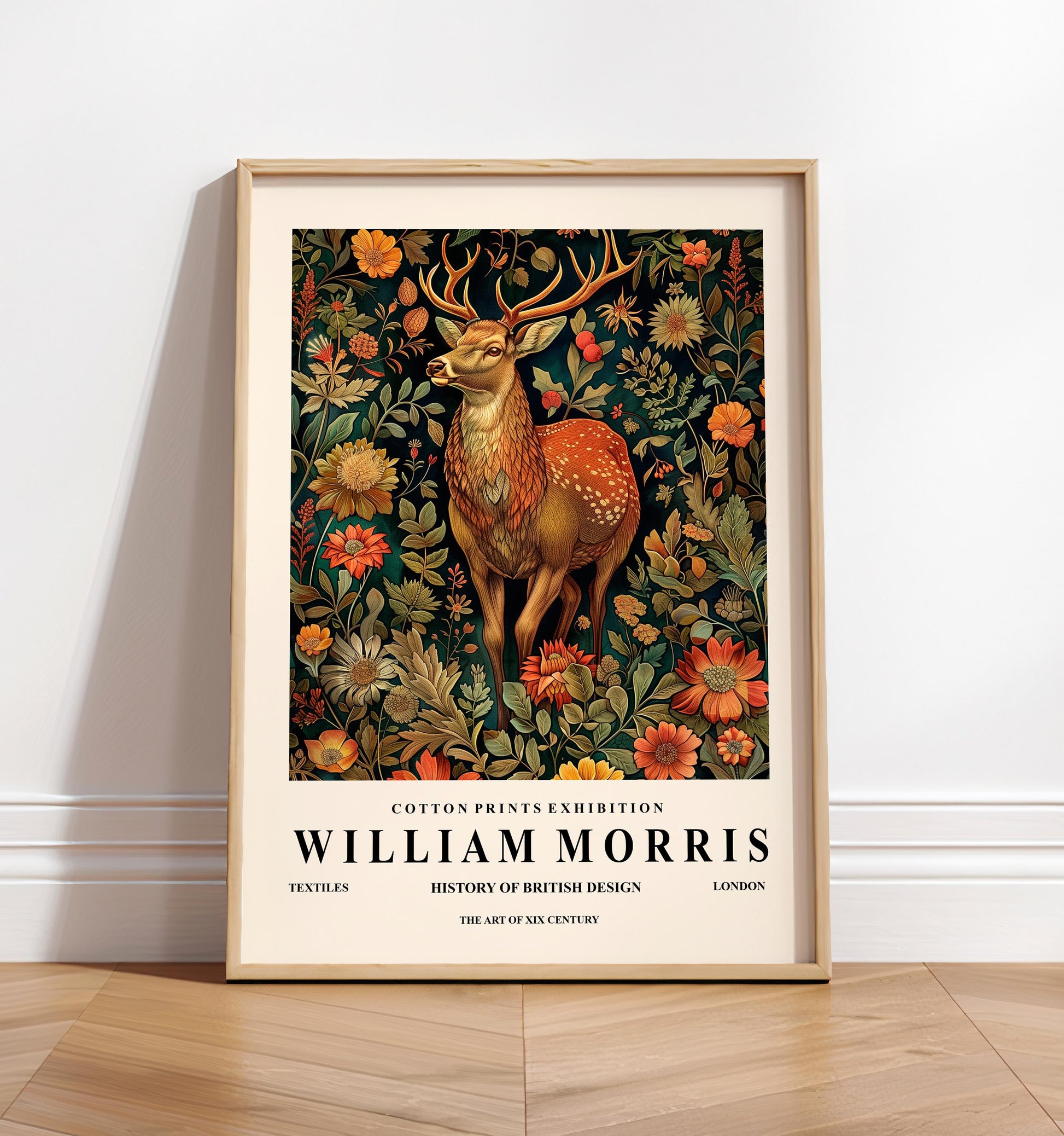 Deer Art Print: William Morris Style, Botanical Forest Animal Wall Art