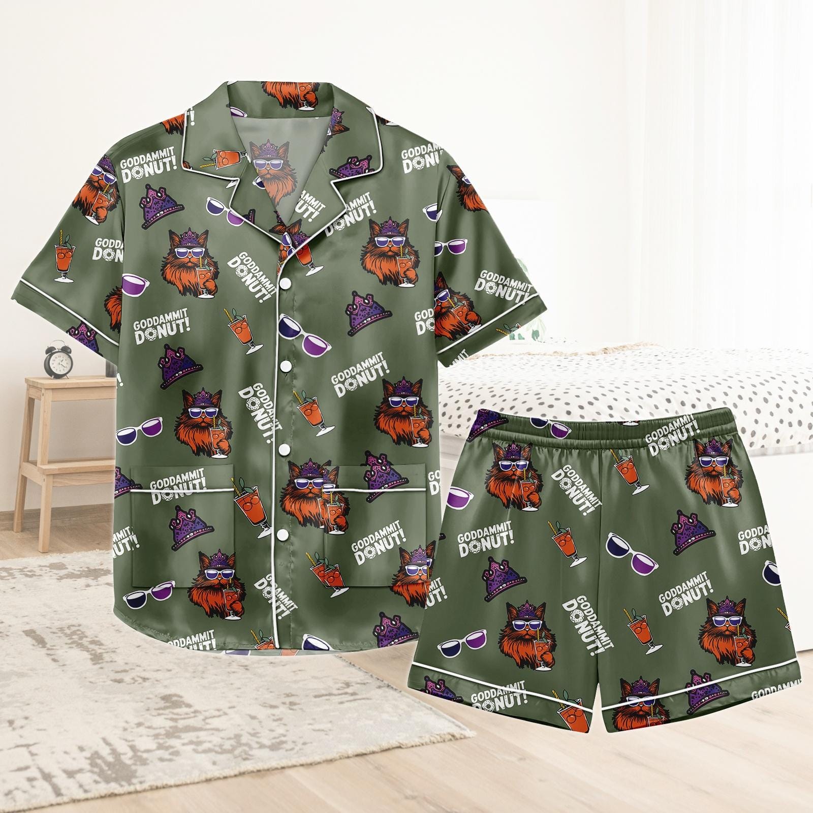 Dungeon Crawler Carl Short Satin Pajamas, Sci Fi Book Pajamas, Dungeon Crawler Carl Pajamas For Fan, Cozy Reading Matching Pajamas Set