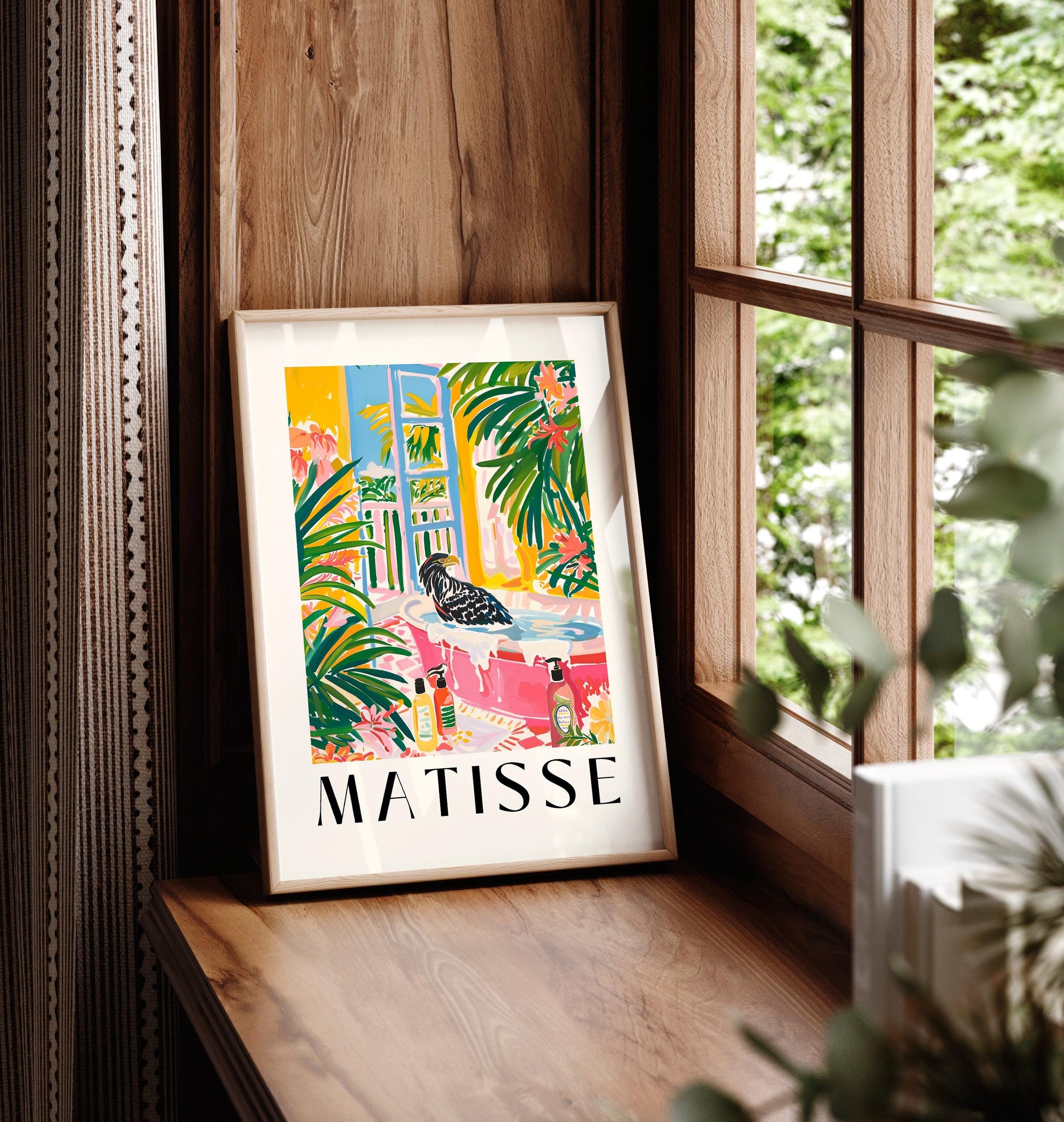 Eagle in Bathtub Art Print: Pink Maximalist Bathroom Wall Decor