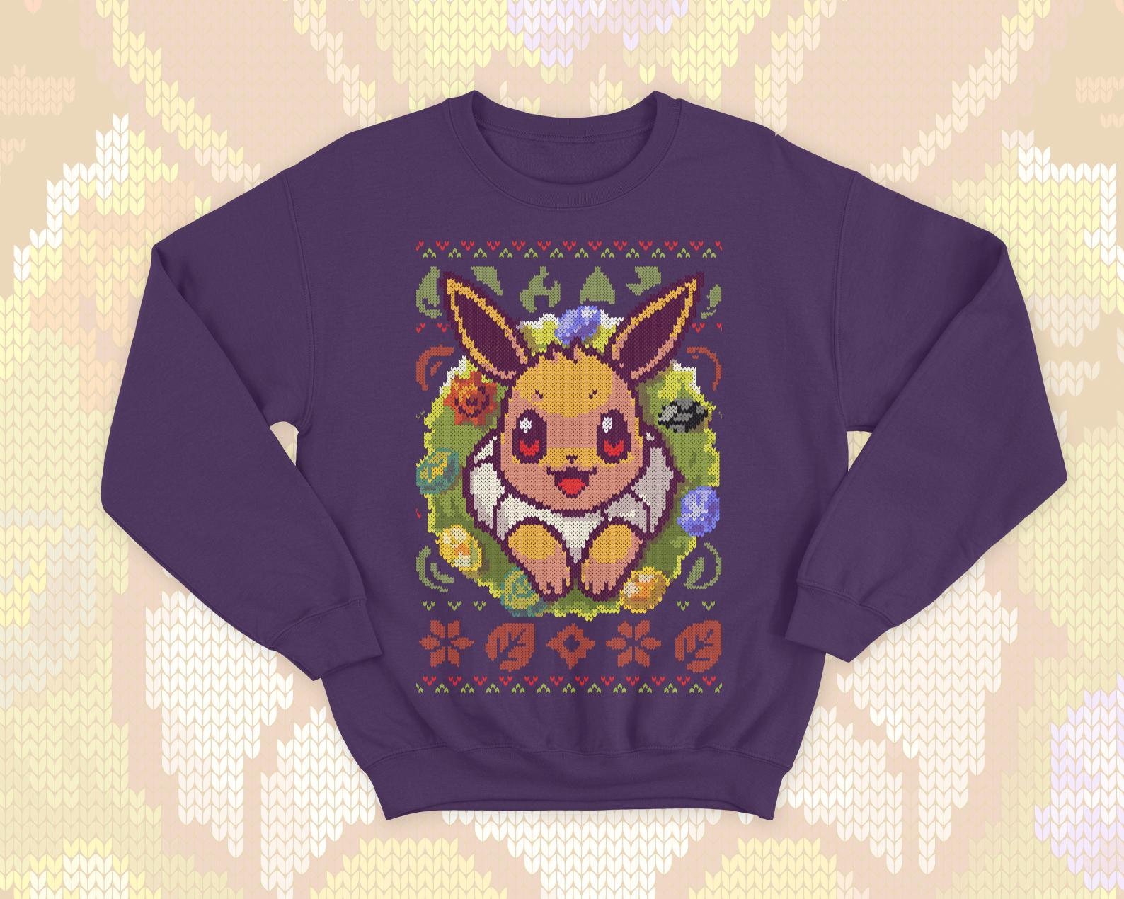 Eeveelution gamer Ugly Christmas - Cute and Kawaii sweatshirt gift - video game monster - Evolution stones - moon - sun - pixel art