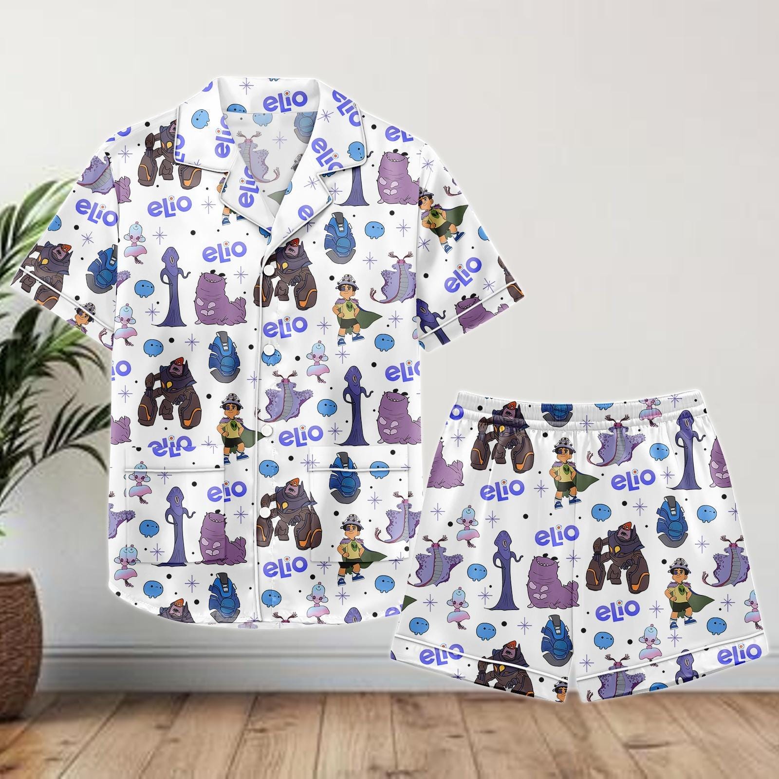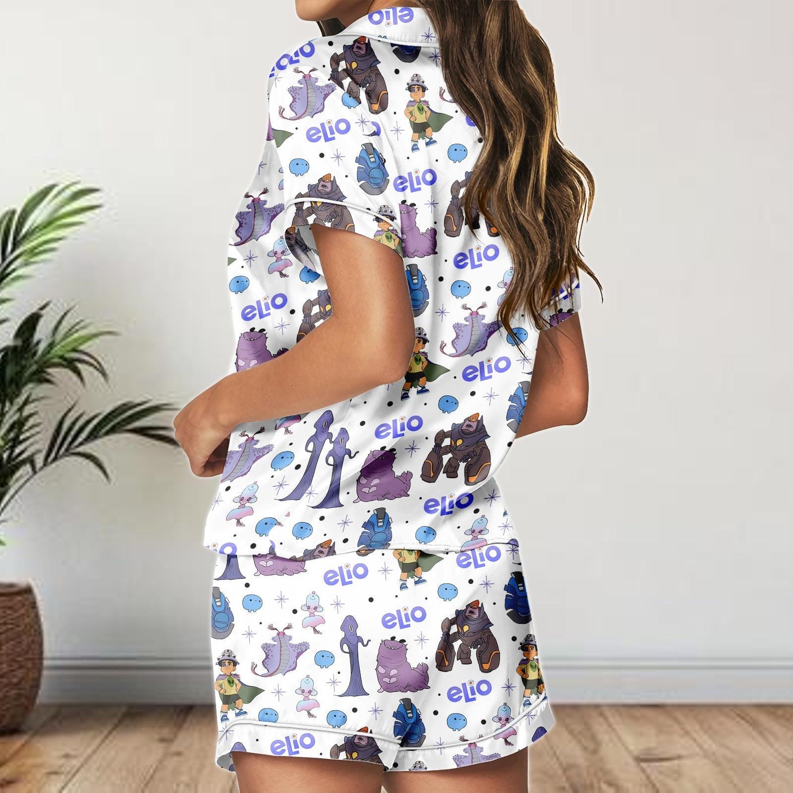 Elio Movie Satin Pajamas Shorts, Pixar Characters Sleepwear, Cute Lounge PJs for Women, Cartoon Summer Pajama Gift