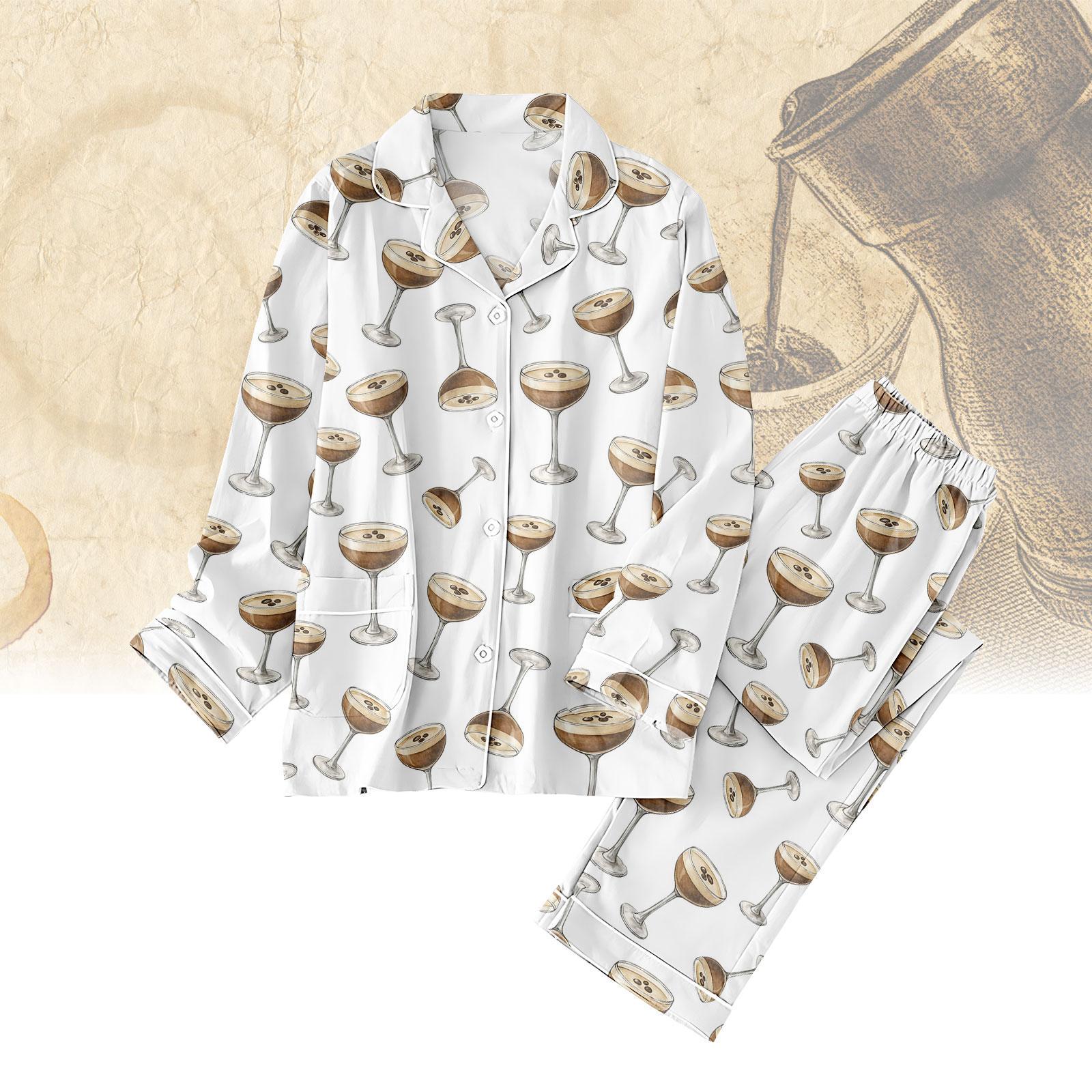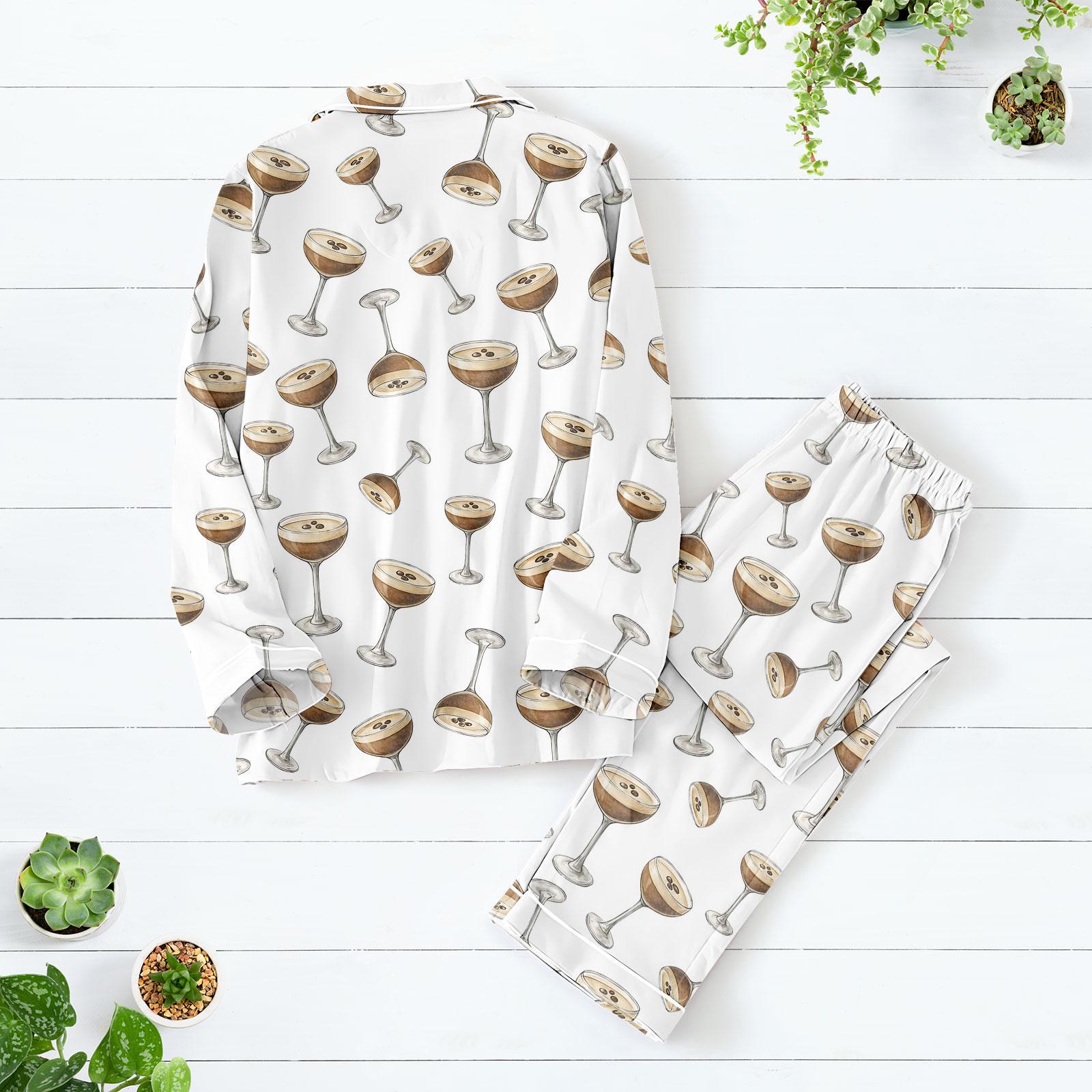 Espresso Martini Pajamas Set Women, Espresso Sleepwear, Champagne Cocktail Satin Sleepwear, Bachelorette Party Pajamas, Wedding Pajamas