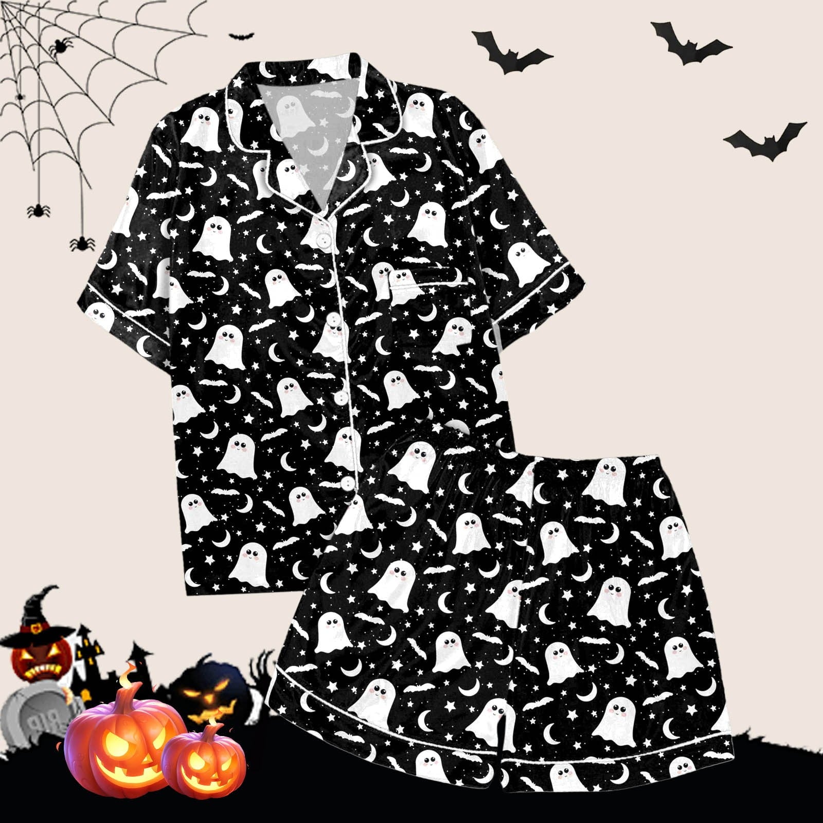 FADAACAI Womens Pajama Sets Women Pajamas Graphic Printed Silk Satin Cute Sleepwear Buttons Short Sleeve Tops Shorts Sets Silk Pajamas For Women Womens Loungewear Set Black S Clearance?