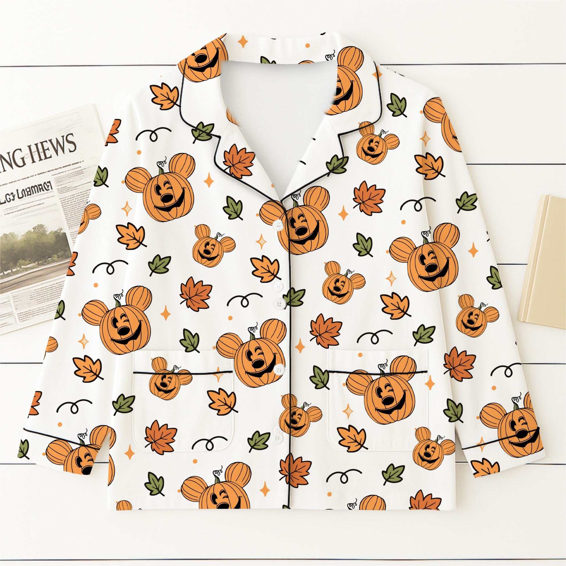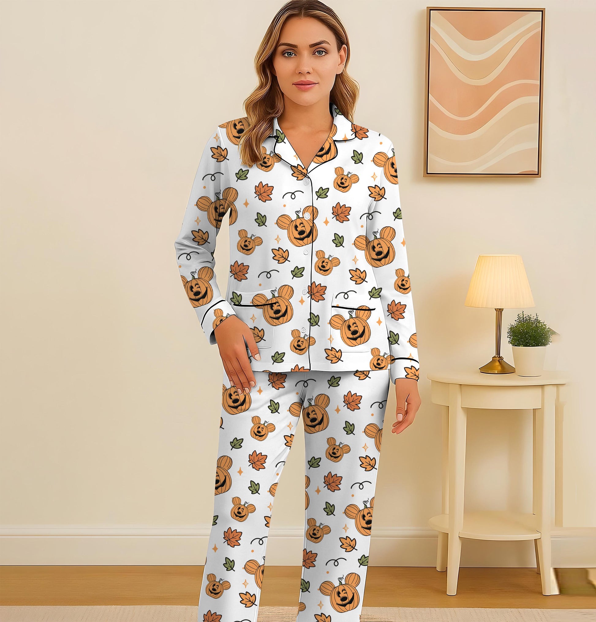 Fall Pumpkin Mouse Leaves Pajamas Set, Halloween Mk Pumpkin Sleepwear, WDW Cartoon Homewear, Cozy Fall Loungewear, Spooky Season Gift