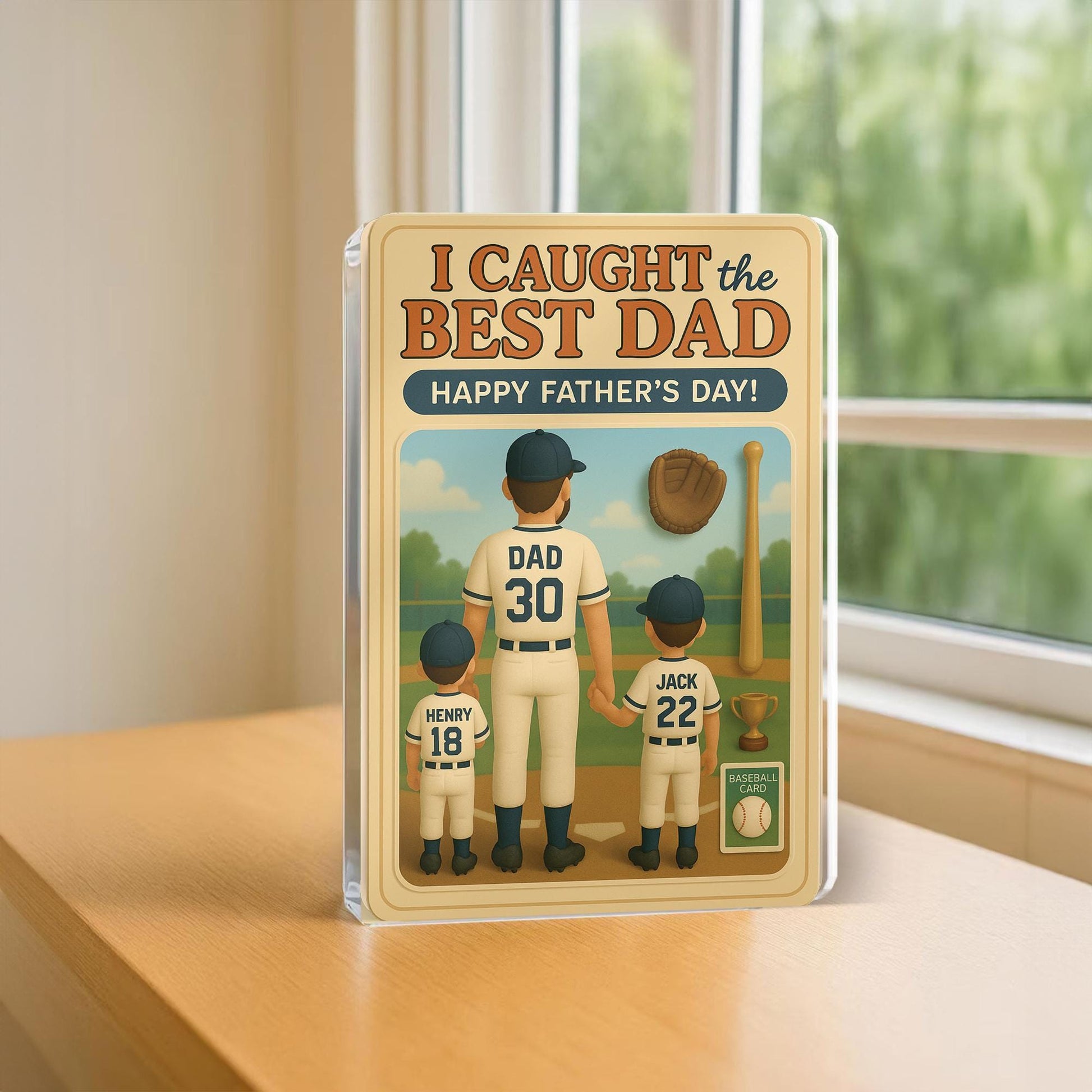Father's Day 2025 Gift, We Caught The Best Dad Baseball Custom Figure Personalized Acrylic Block Plaque, Personalized Gift For Dad, Husband