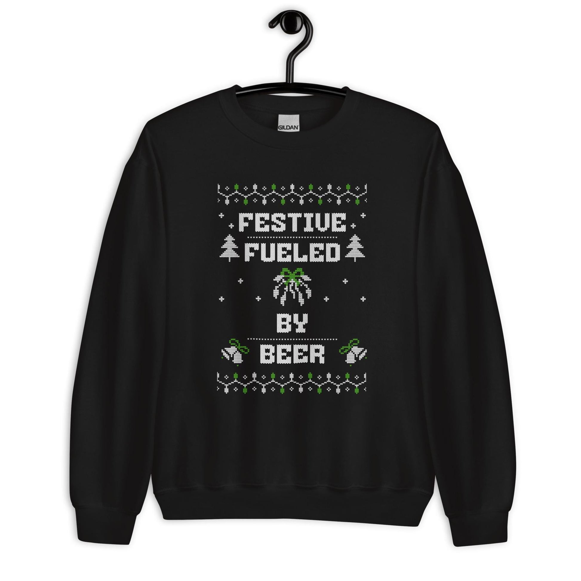 Festive Fueled By Beer Funny Ugly Christmas Jumper | Boozy Drinking | Humorous Knit Xmas Party Holiday Gift