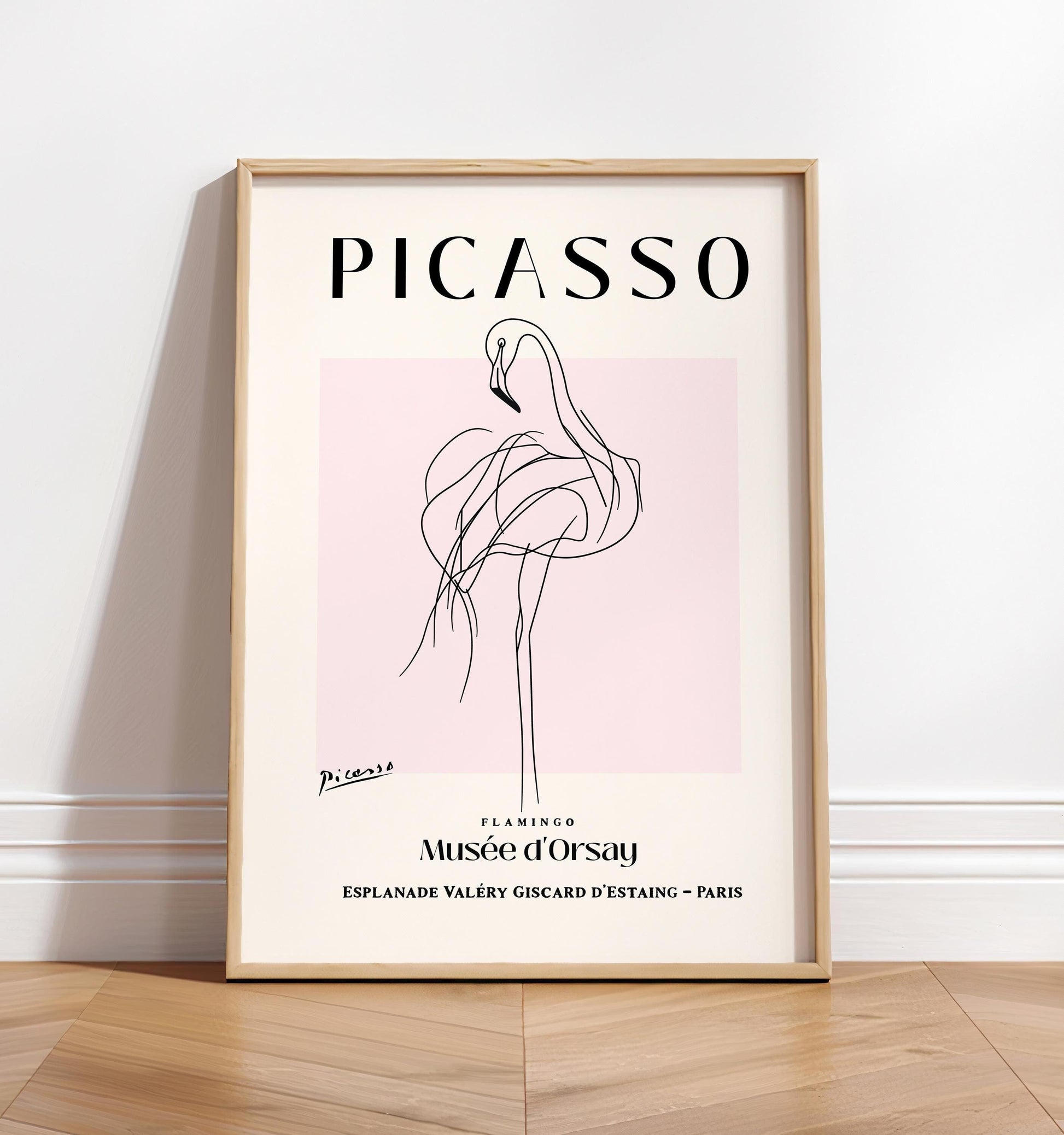 Flamingo art print, Mid century exhibition poster, Bird lover gift, Picasso art, Minimalist farm wall art